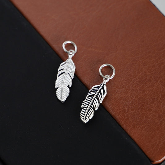Sterling Silver Feather Charm Pendant for Bracelet Necklace Earrings