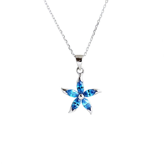 • 925 Sterling Silver Flower Pendant with Light Blue Sapphire CZ