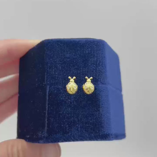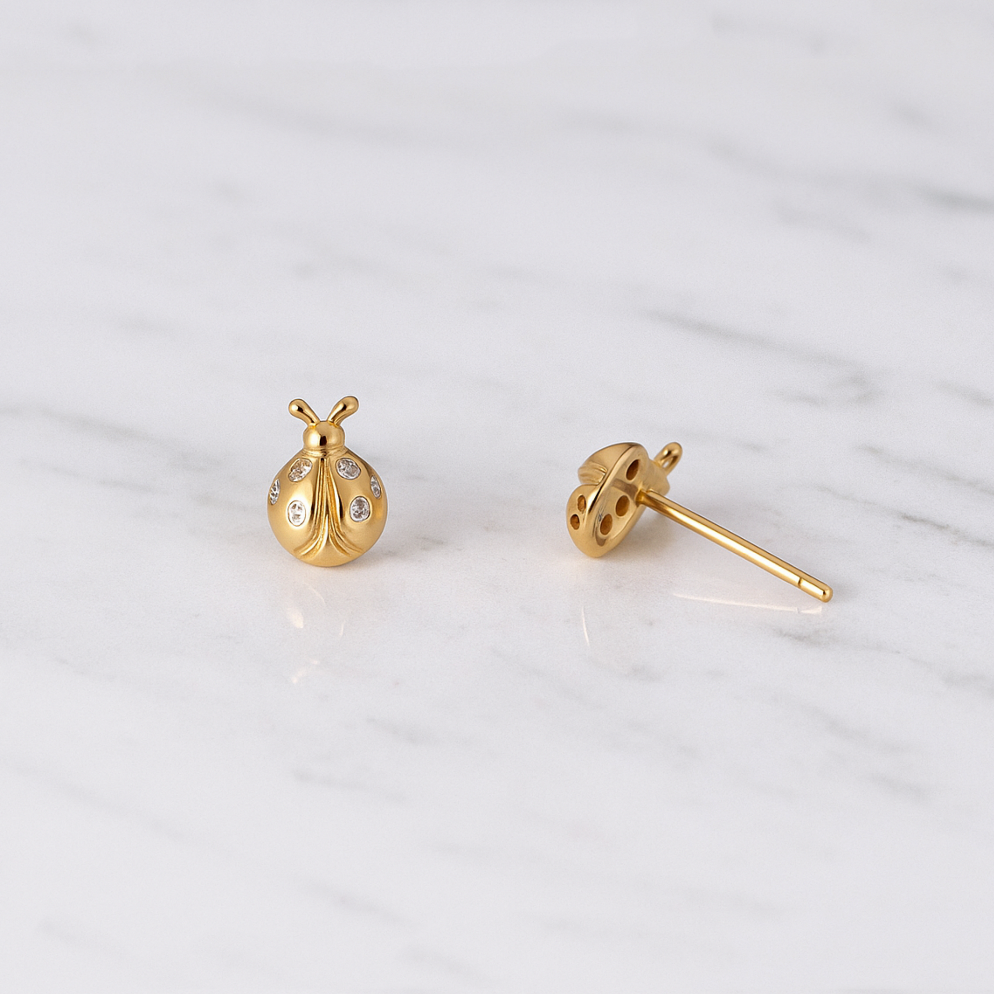 These dainty ladybird stud earrings are the perfect way to add a touch of elegance and whimsy to your outfit. The ladybugs are made of 18K gold plated sterling silver and feature sparkling CZ stones for a luxurious look. The earrings are lightweight and comfortable to wear, making them perfect for everyday wear.