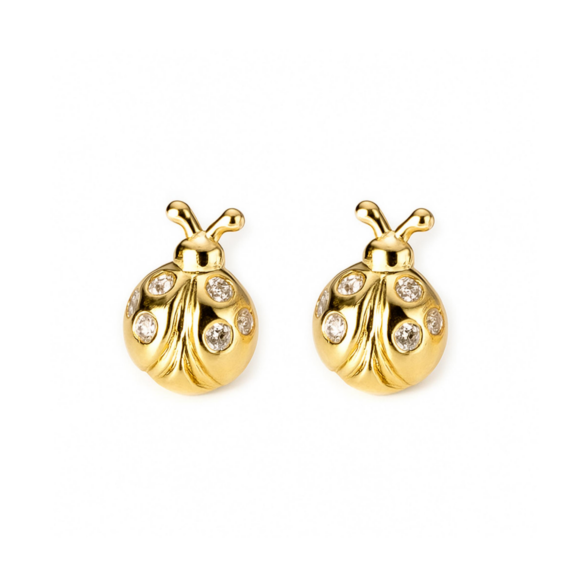 18K Gold on Sterling Silver Ladybird Stud Earrings with CZ