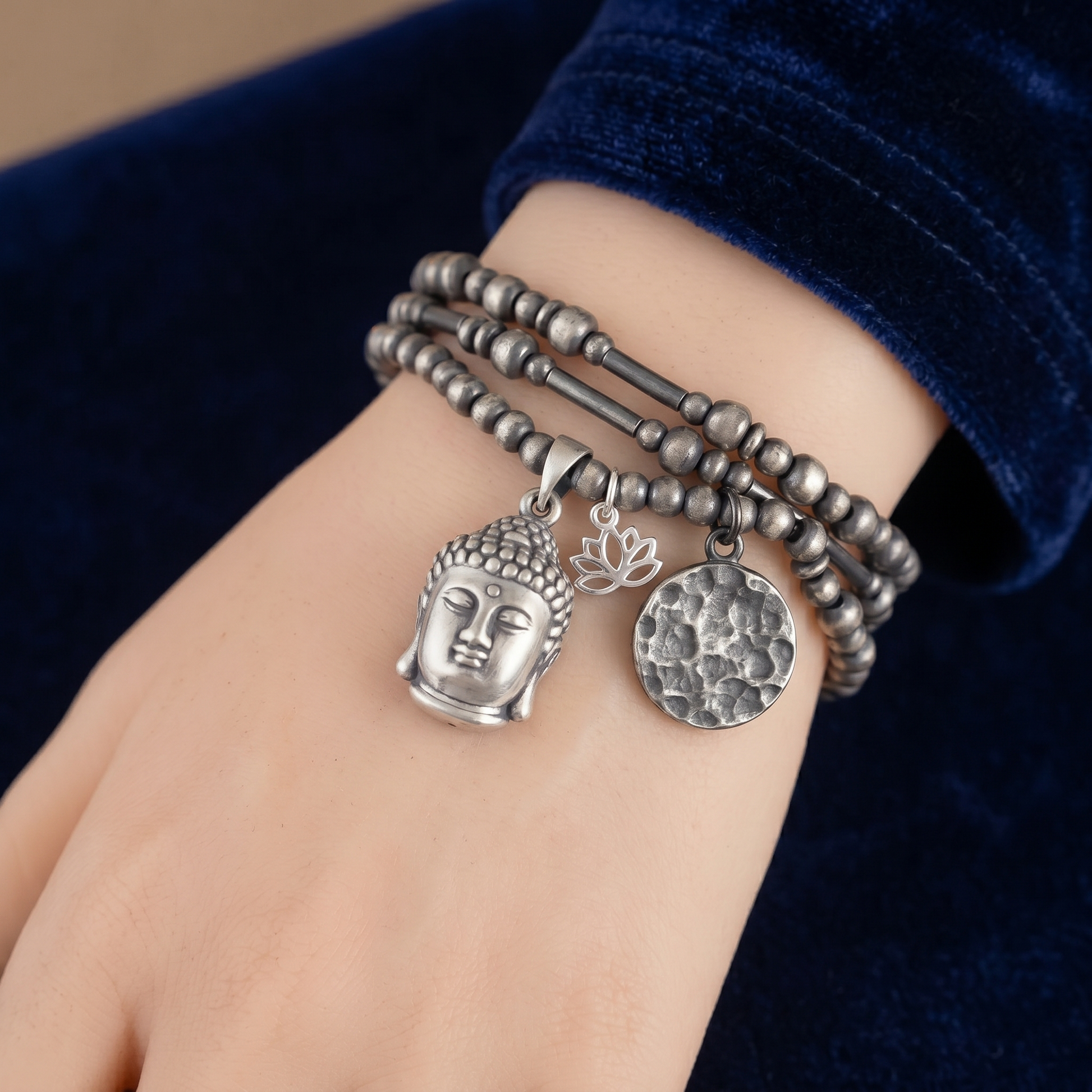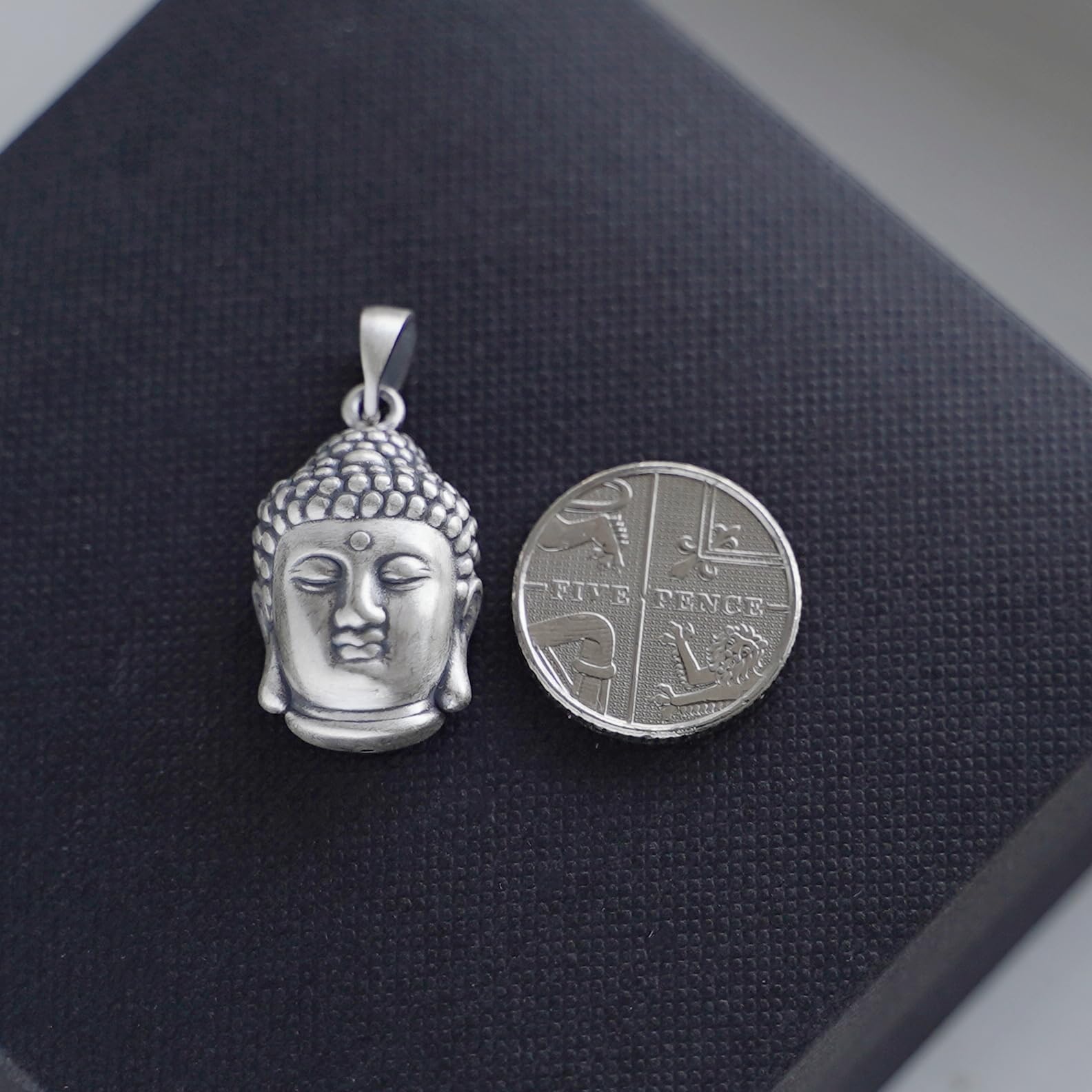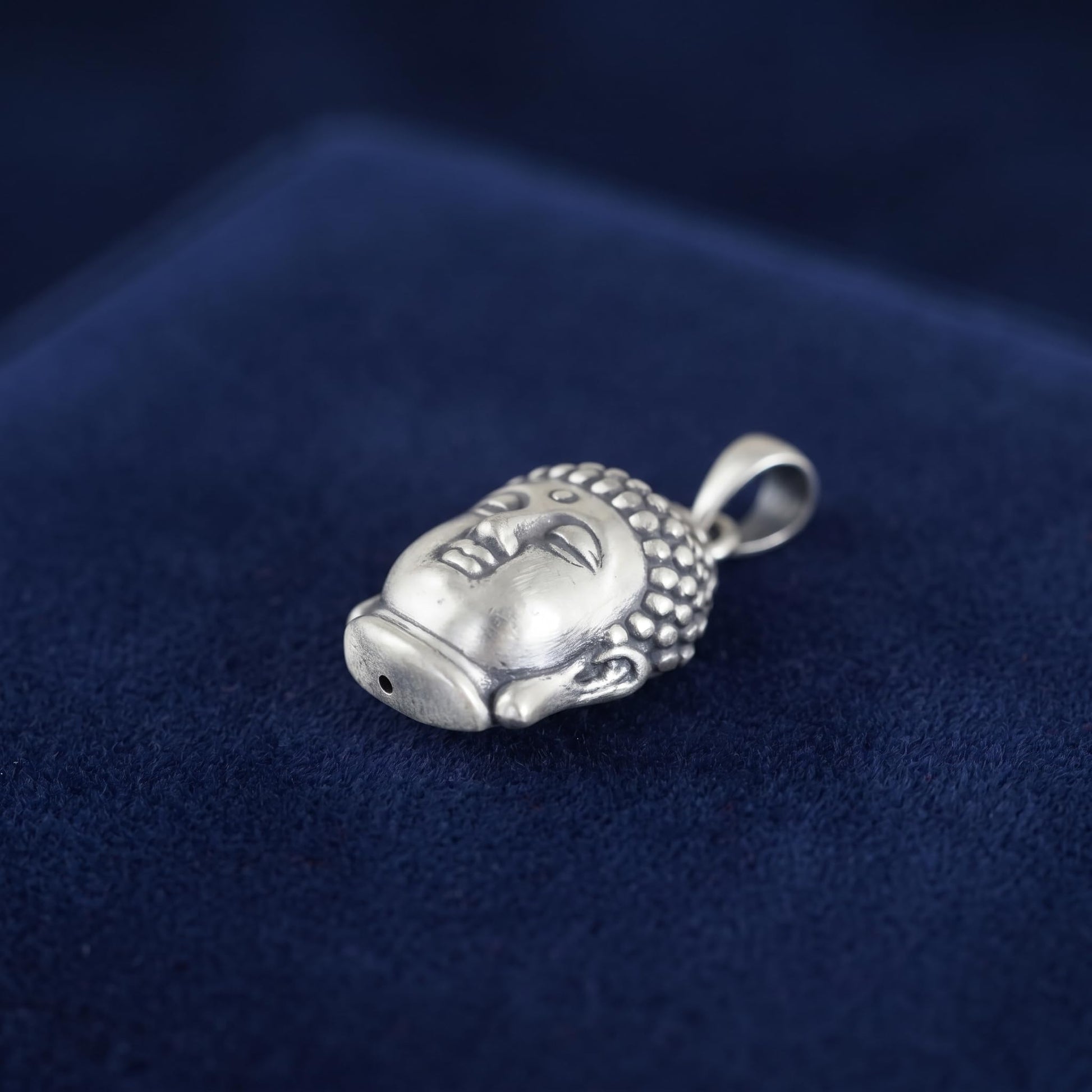 Oxidised 999 fine silver hollow 3D Buddha head charm pendant, ideal for necklaces and bracelets. Lightweight, simple, and easy to wear, with matching chains available.