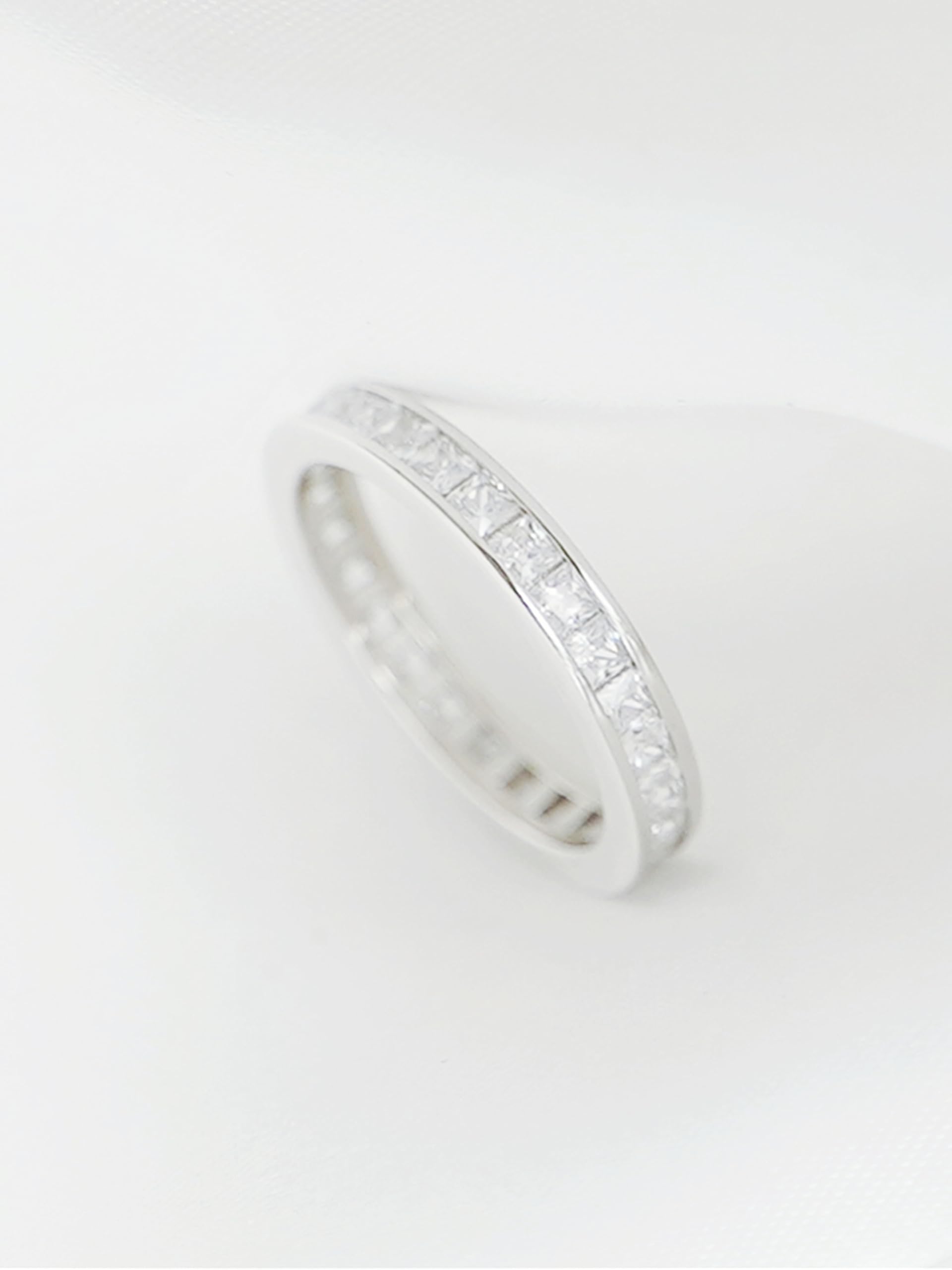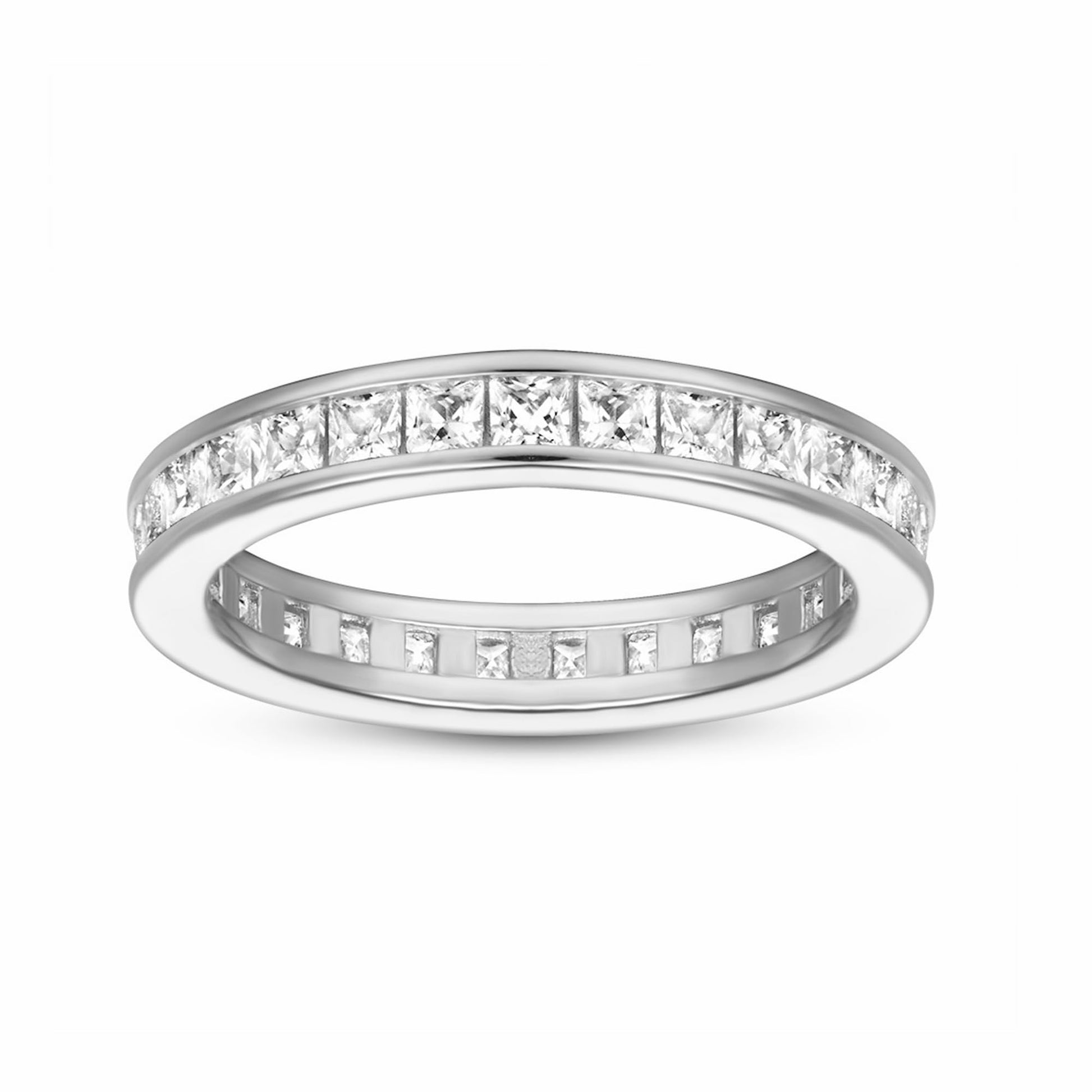 Sterling Silver Full Eternity 2.1mm Channel Set Princess Cut CZ Wedding Ring - T Boxed Item Specifics: Ring Size: UK Size I(US 4.25), J1/2(5), M(6.2), O(7.2), Q(8), S(9), T(9.5) Band Width: 2.1mm Band Thickness: 3.1mm Weight: 2.2g - 3g Composition: sterling silver stamped Surface: rhodium plating