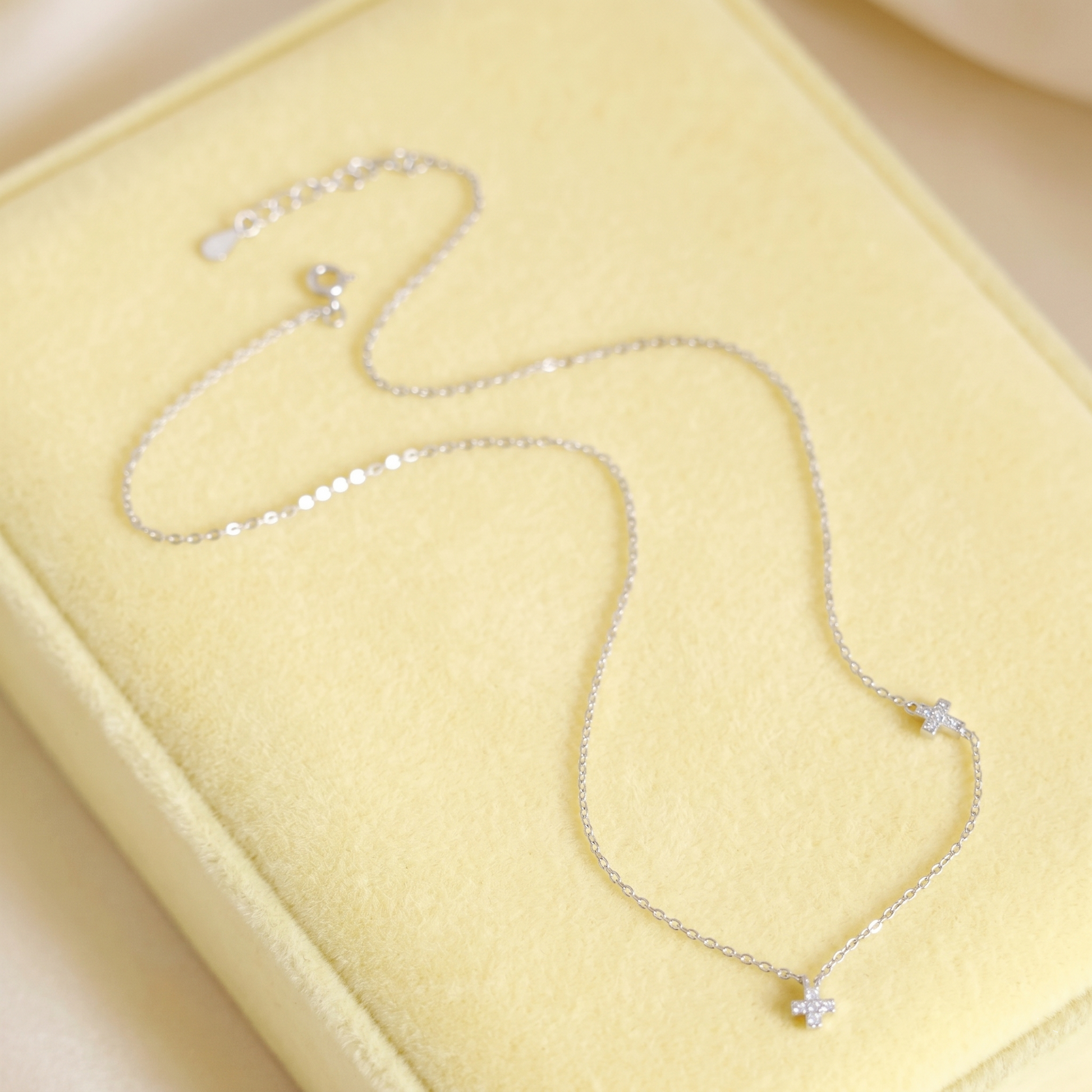 • Style: Horizontal double mini cross charm necklace
