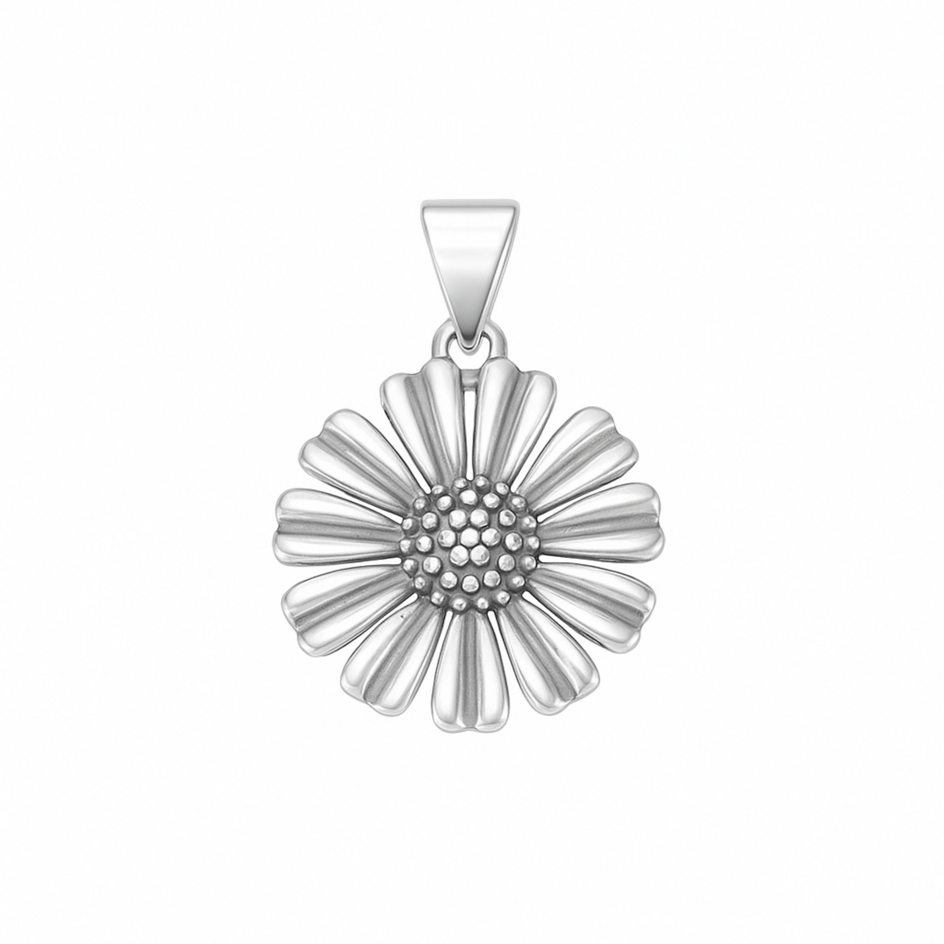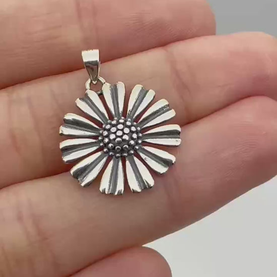 Sterling Silver 17mm Solid Oxidised Retro Daisy Sun Flower Pendant
