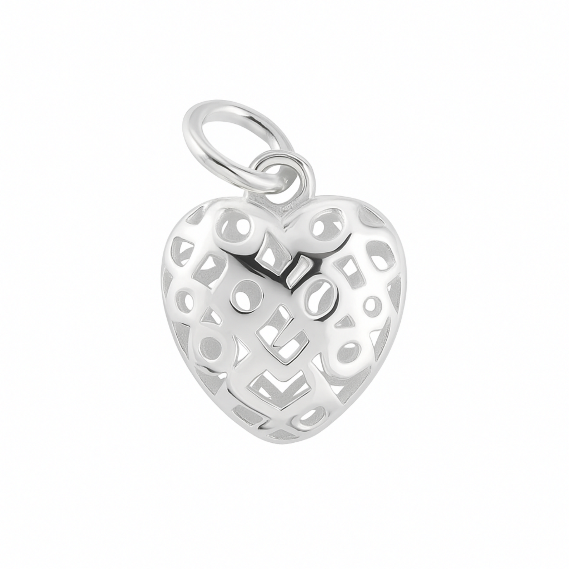 Sterling Silver Heart Charm Pendant with Polished Cut-Out Design