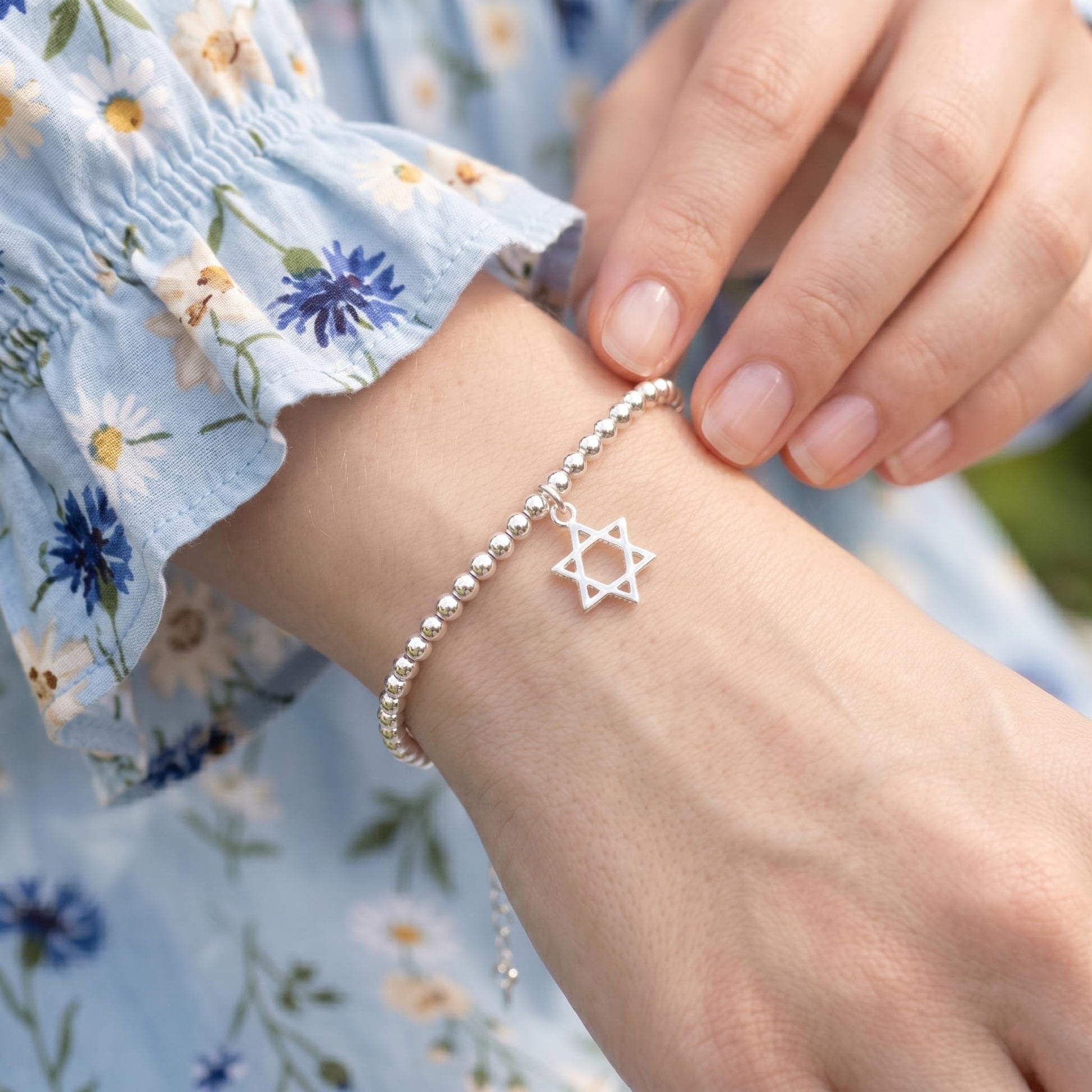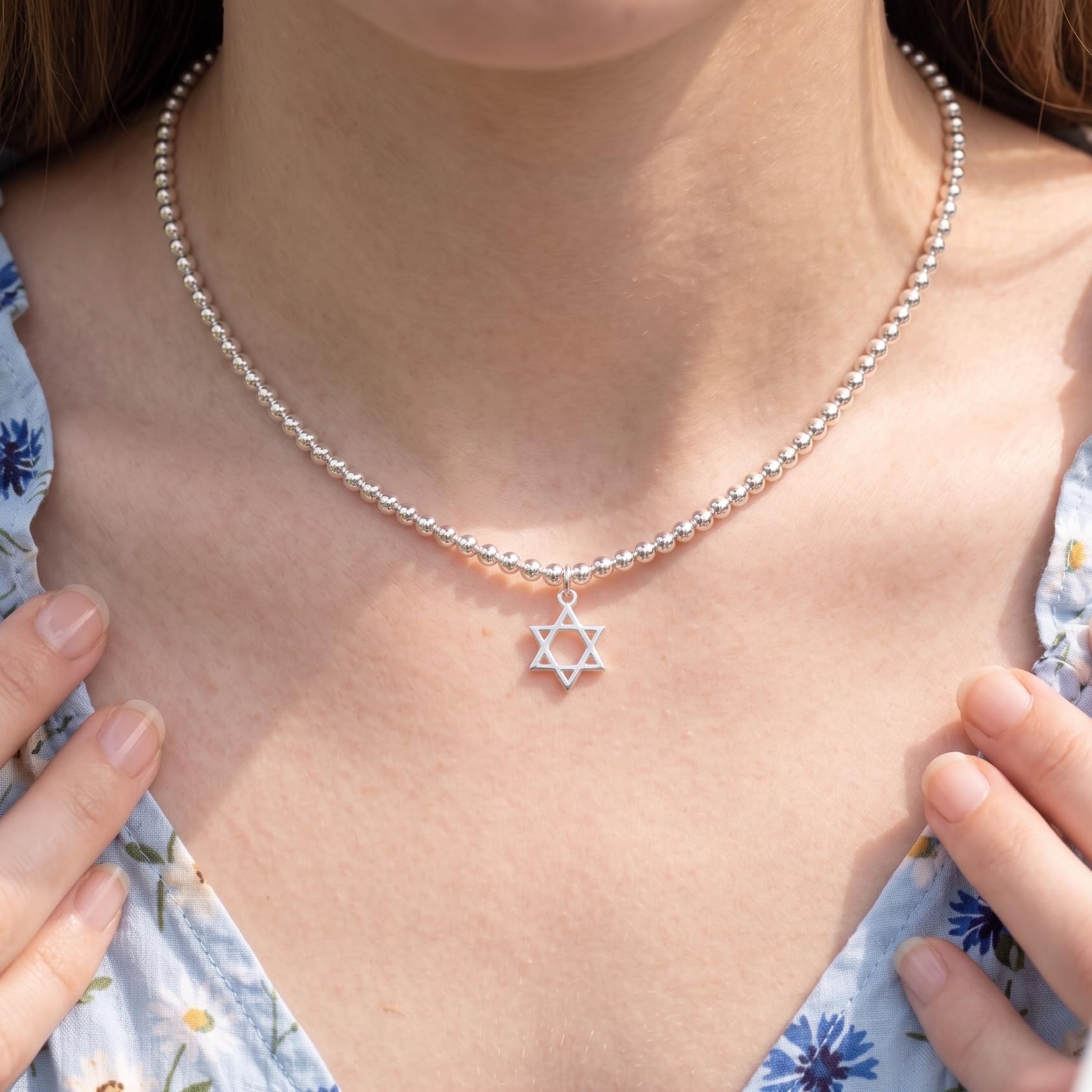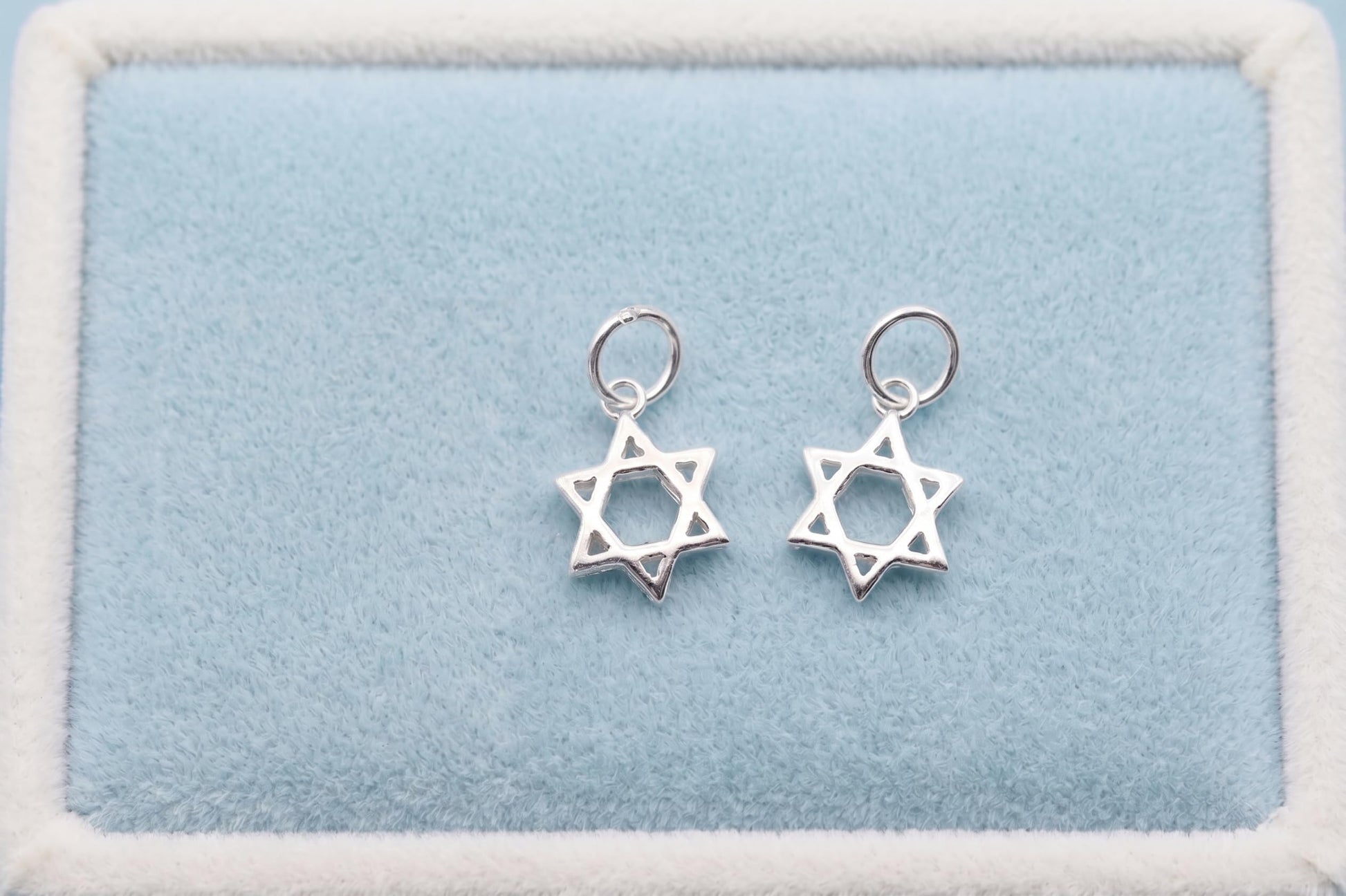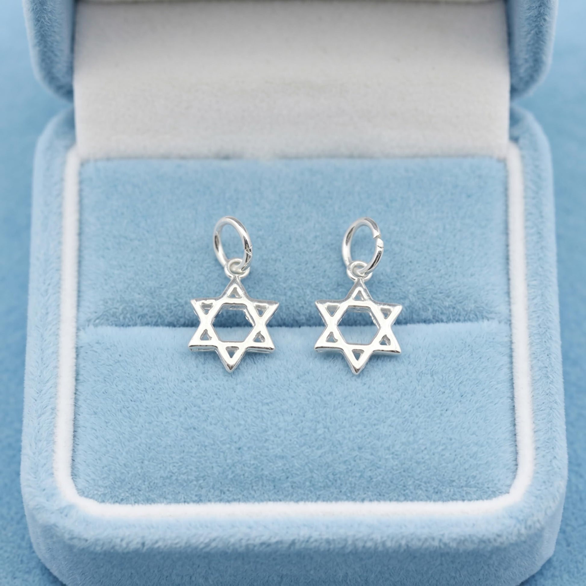 Sterling silver hollow six pointed star (Star of David) charm pendant, ideal for necklaces and bracelets. Lightweight, simple, and easy to wear.