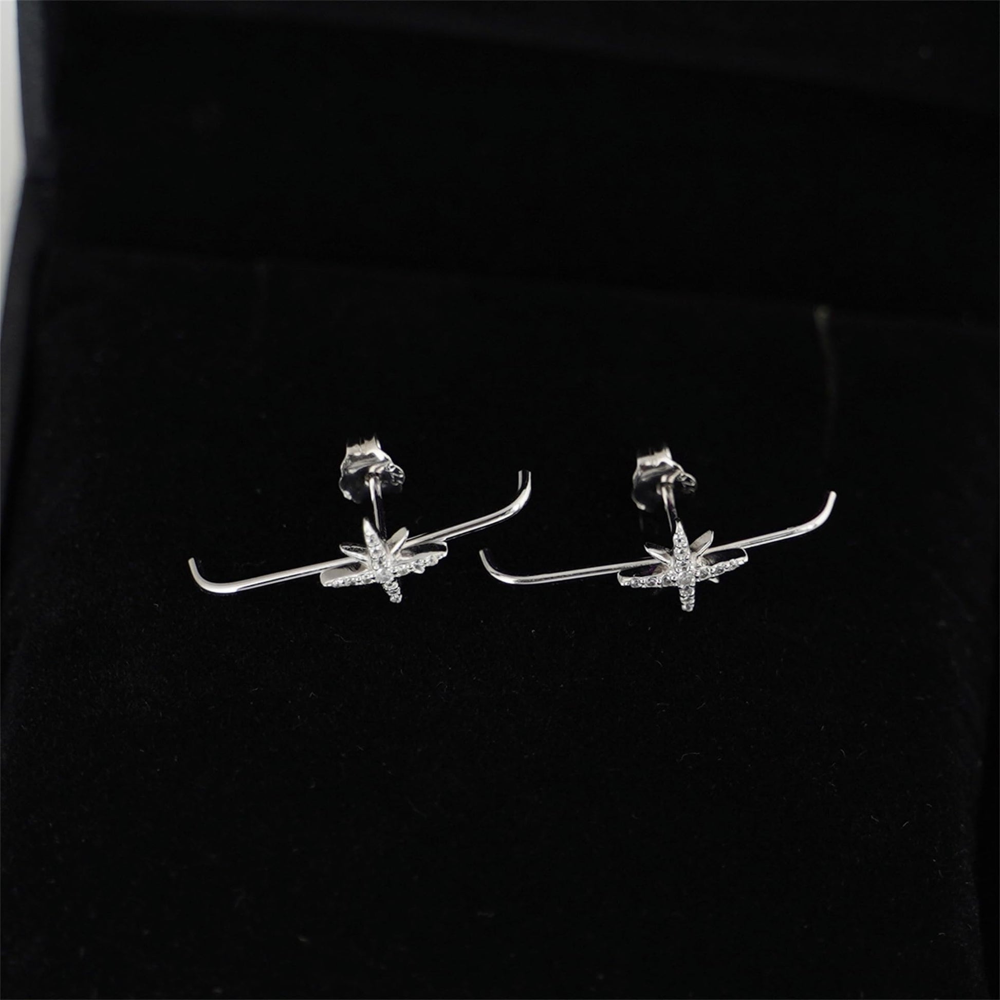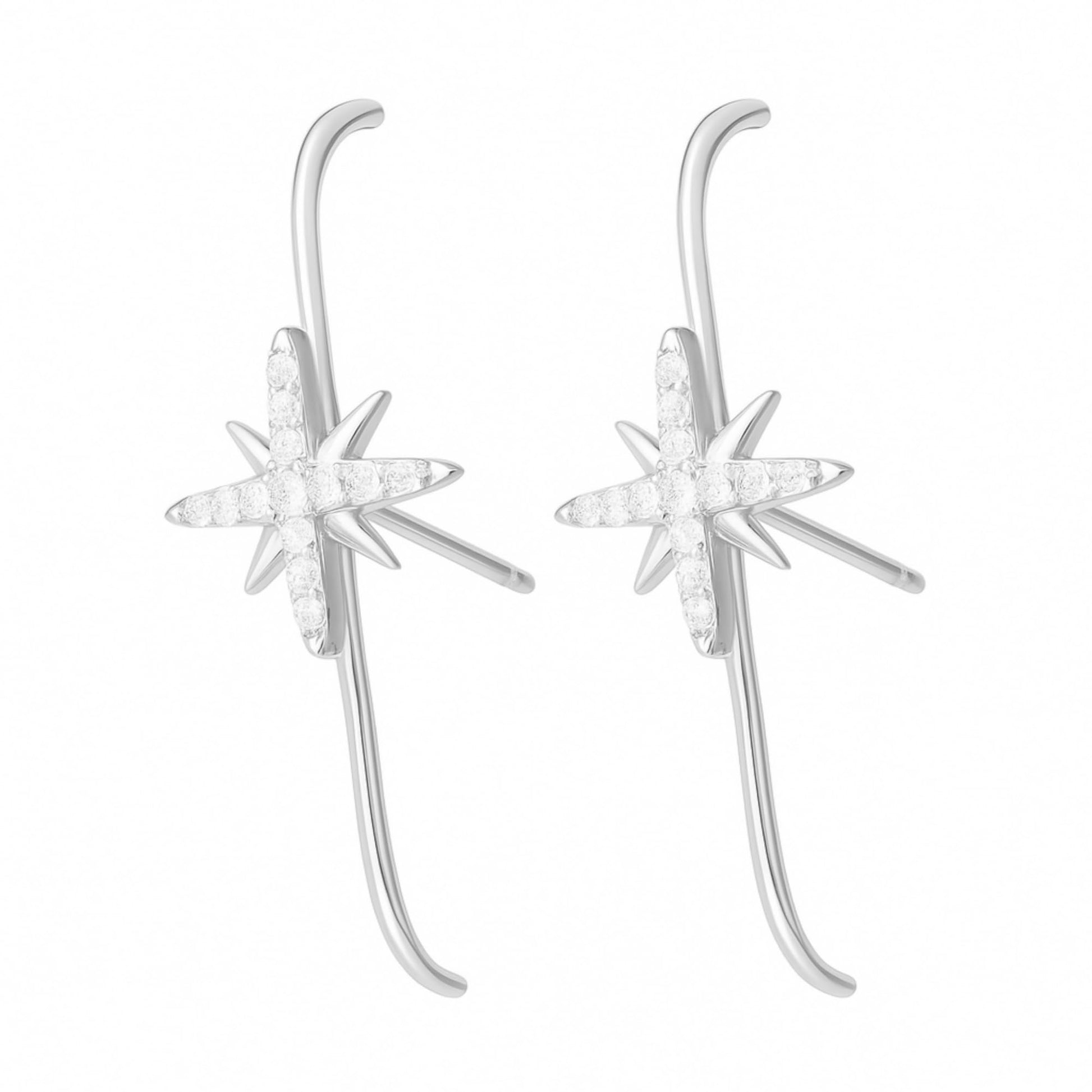 Sterling Silver 9mm North Pole Star Pave CZ Suspender Bar Line Cuff Stud Earrings w Gift Box ITEM SPECIFICS: Earrings Length: 25mm Star Size: 9x9mm Bar Thickness: 1mm Pin Length: 11mm Weight: 1.08g/pair Metal: Sterling Silver Stamped Surface: Rhodium & 18K Gold All Stud Earrings will Include Sterling Silver Butterfly Backs and Rubber Backs