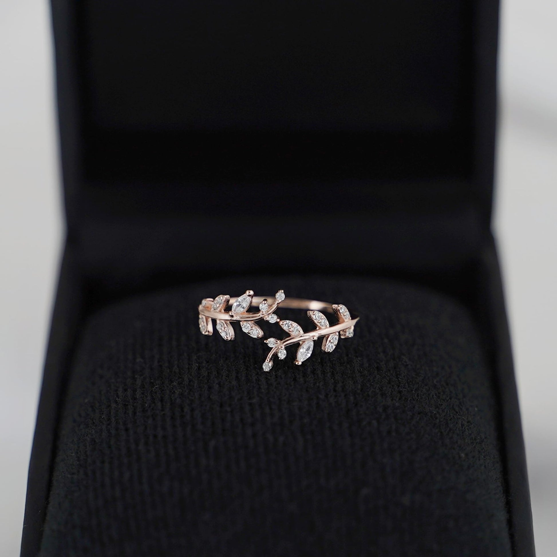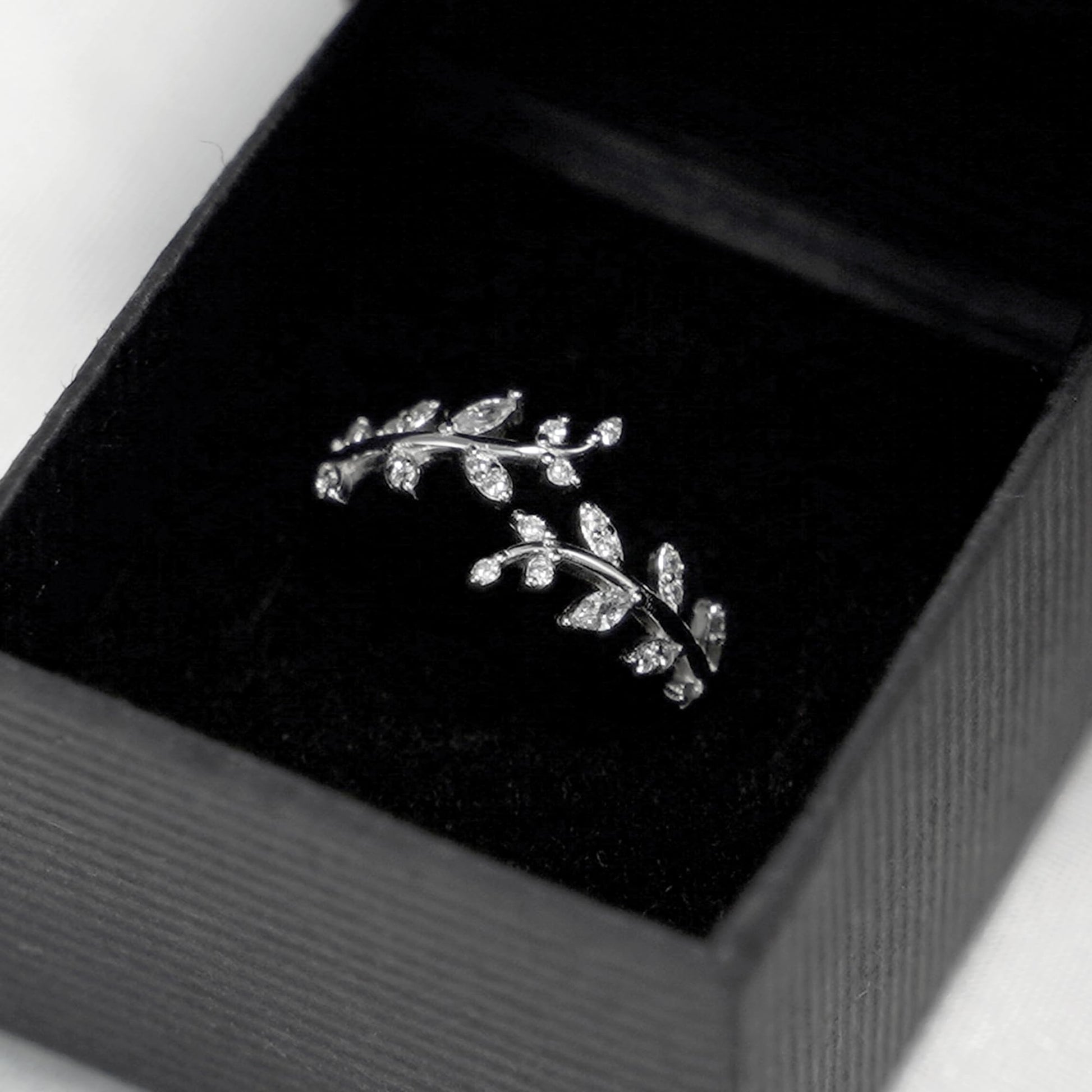 Sterling Silver Cubic Zirconia Leaf Feather Bridal Wrap Ring Adjustable Rhodium / 18K Gold