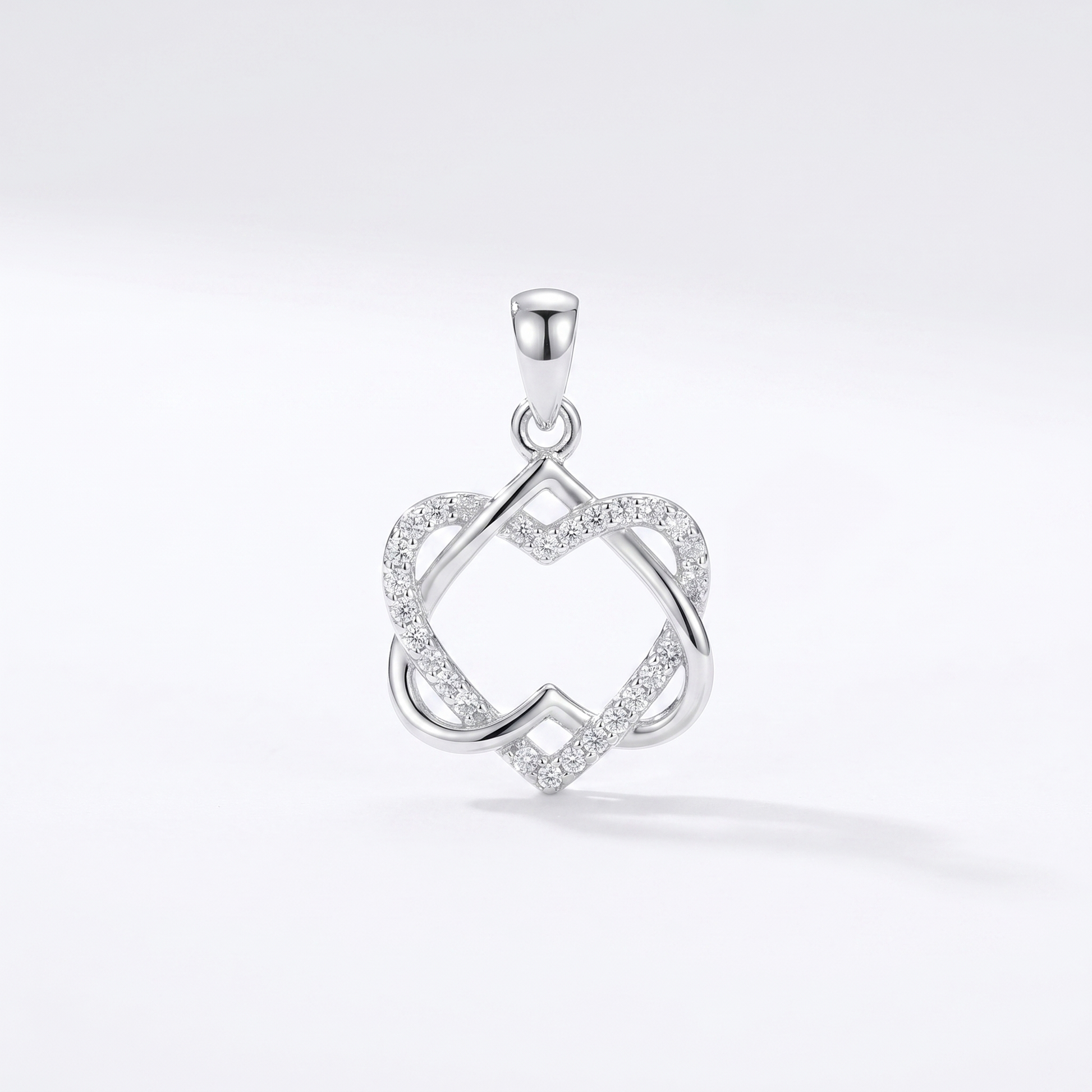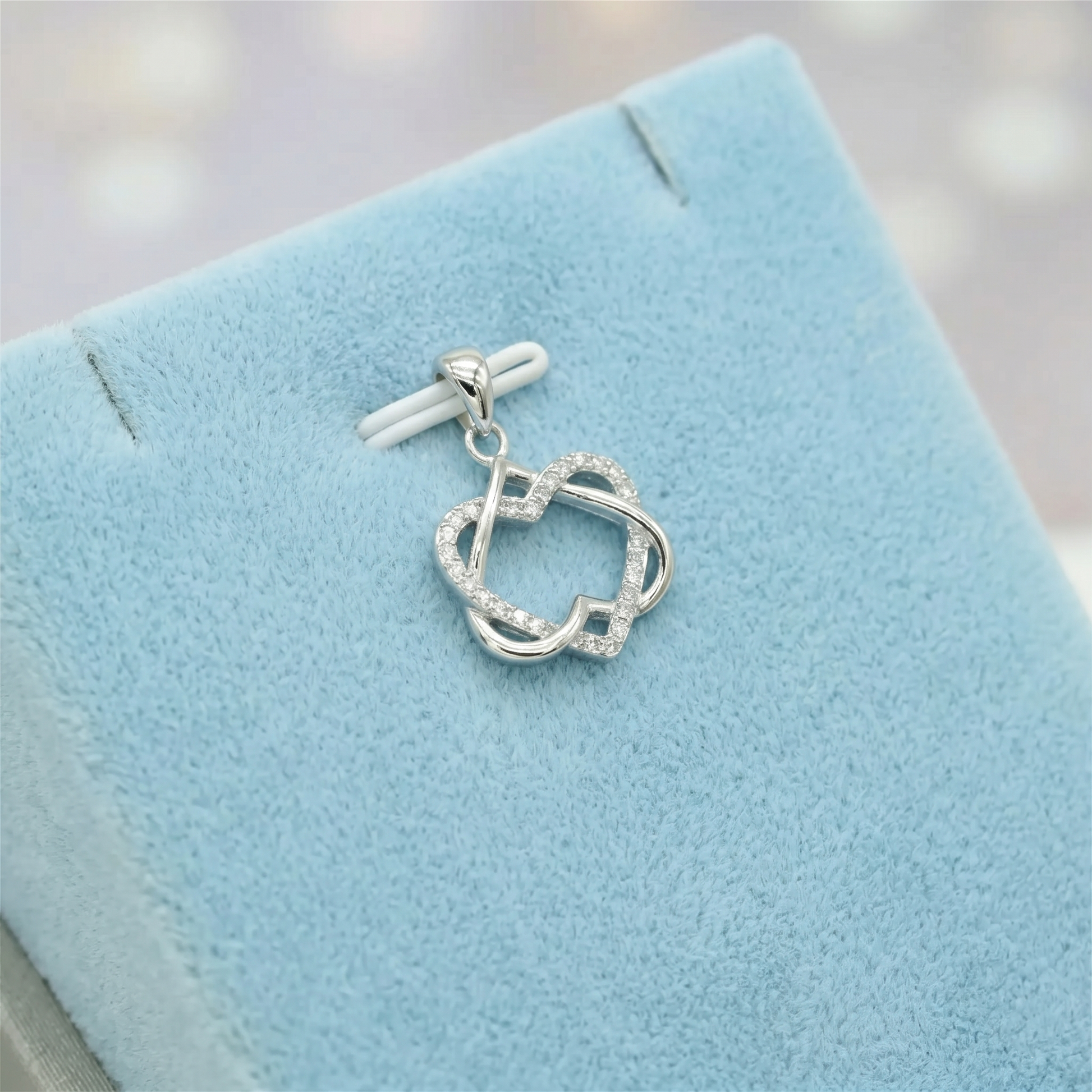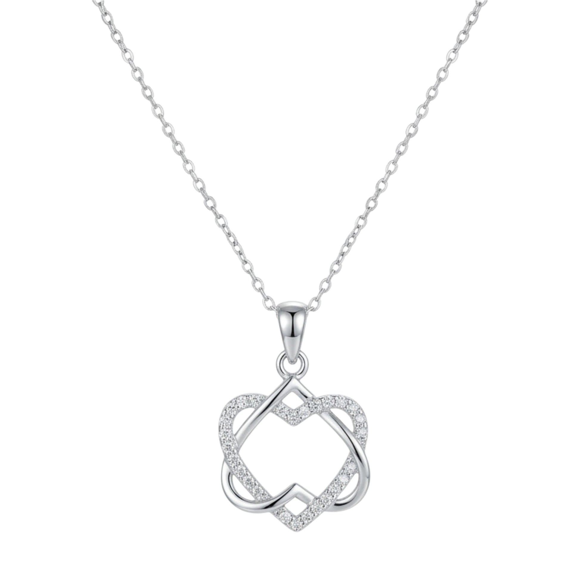 Sterling Silver Double Floating Intertwined Twisted Knot Love Heart Necklace