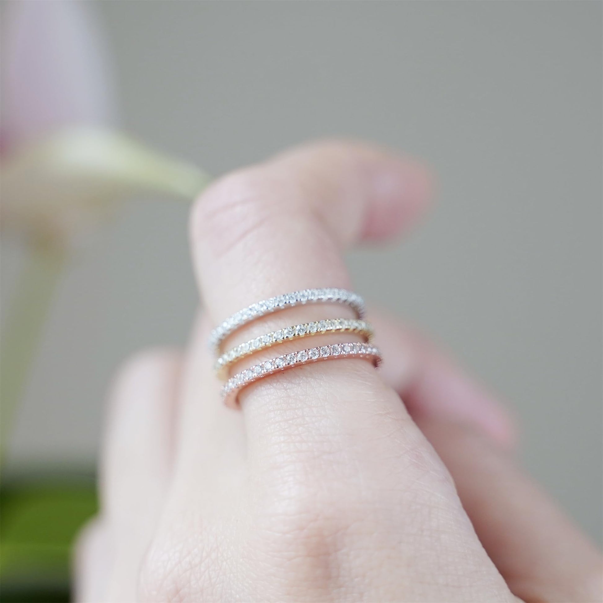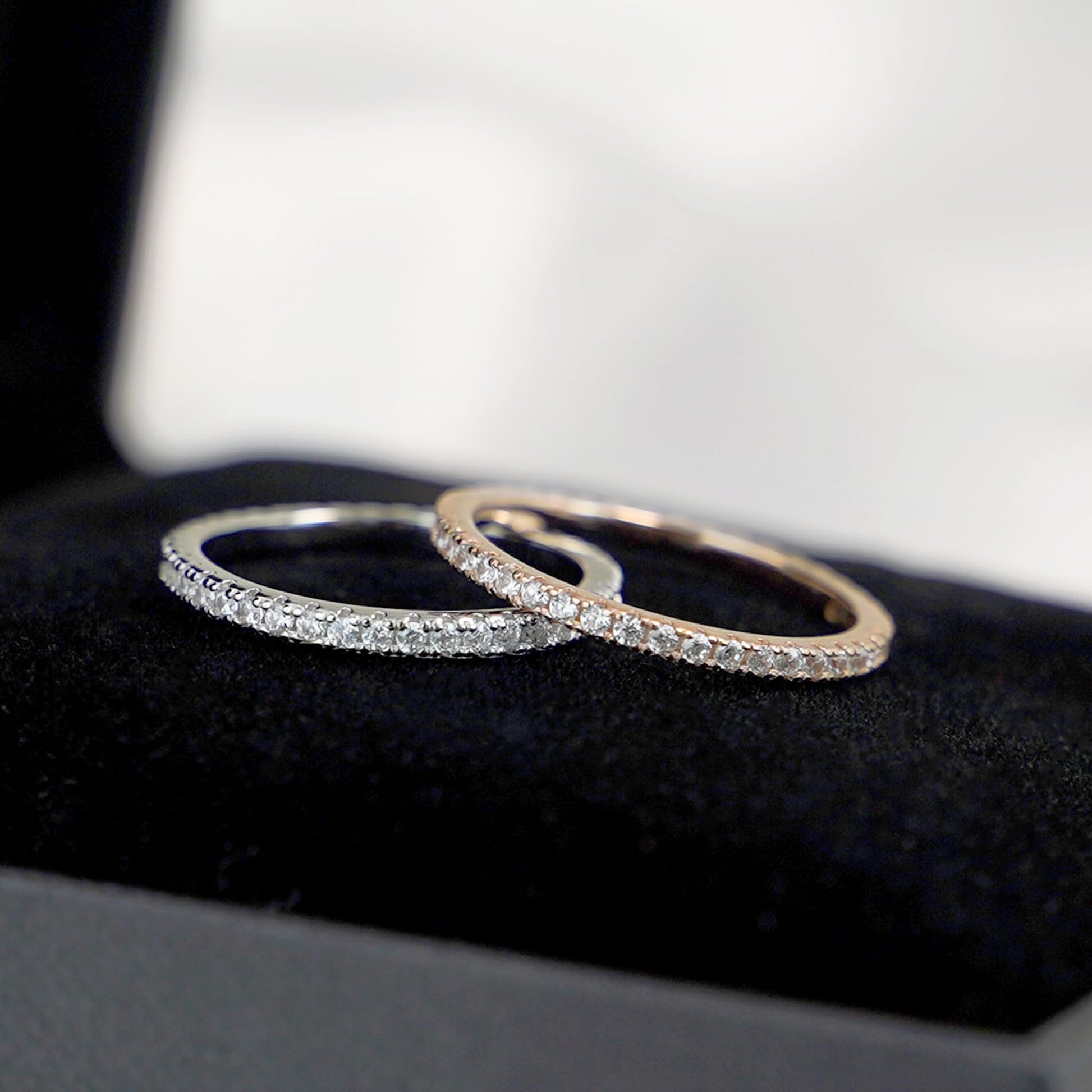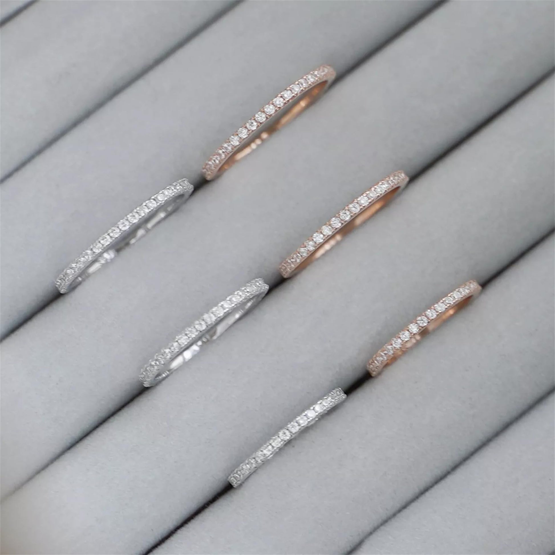 Rhodium / Rose Gold / 18K Gold on Sterling Silver Clear CZ Stackable Full Eternity 1.5mm Thin Band Ring Boxed