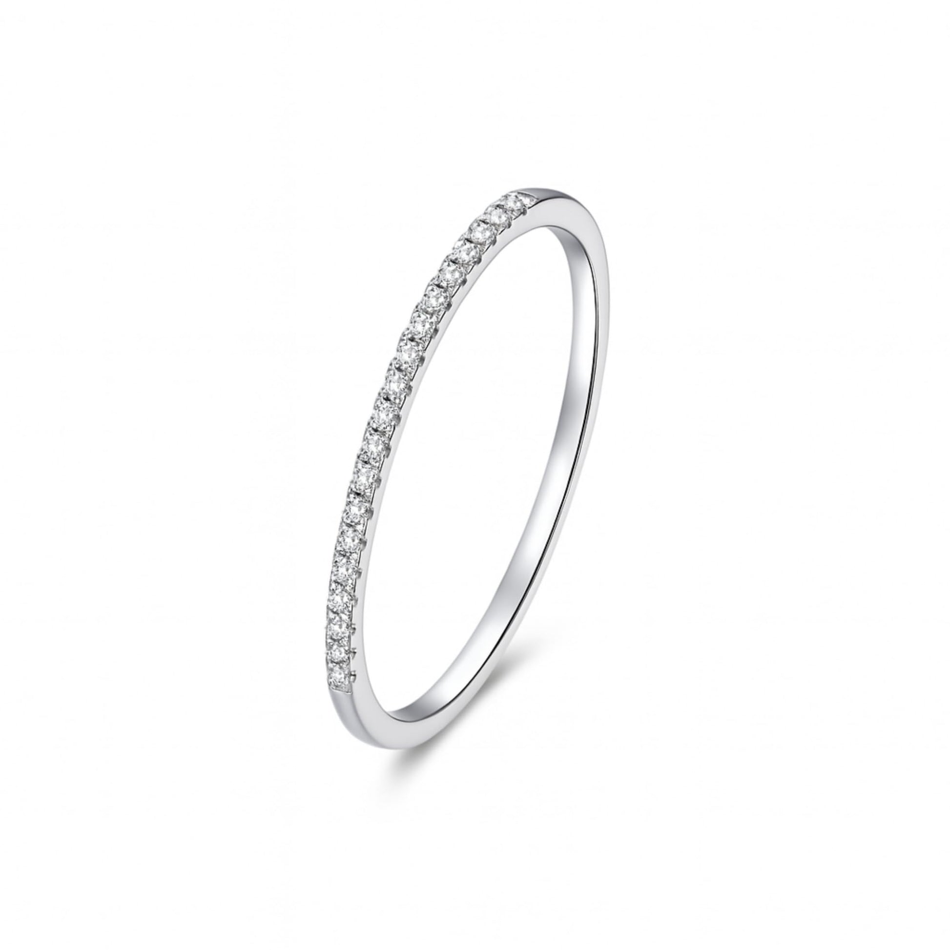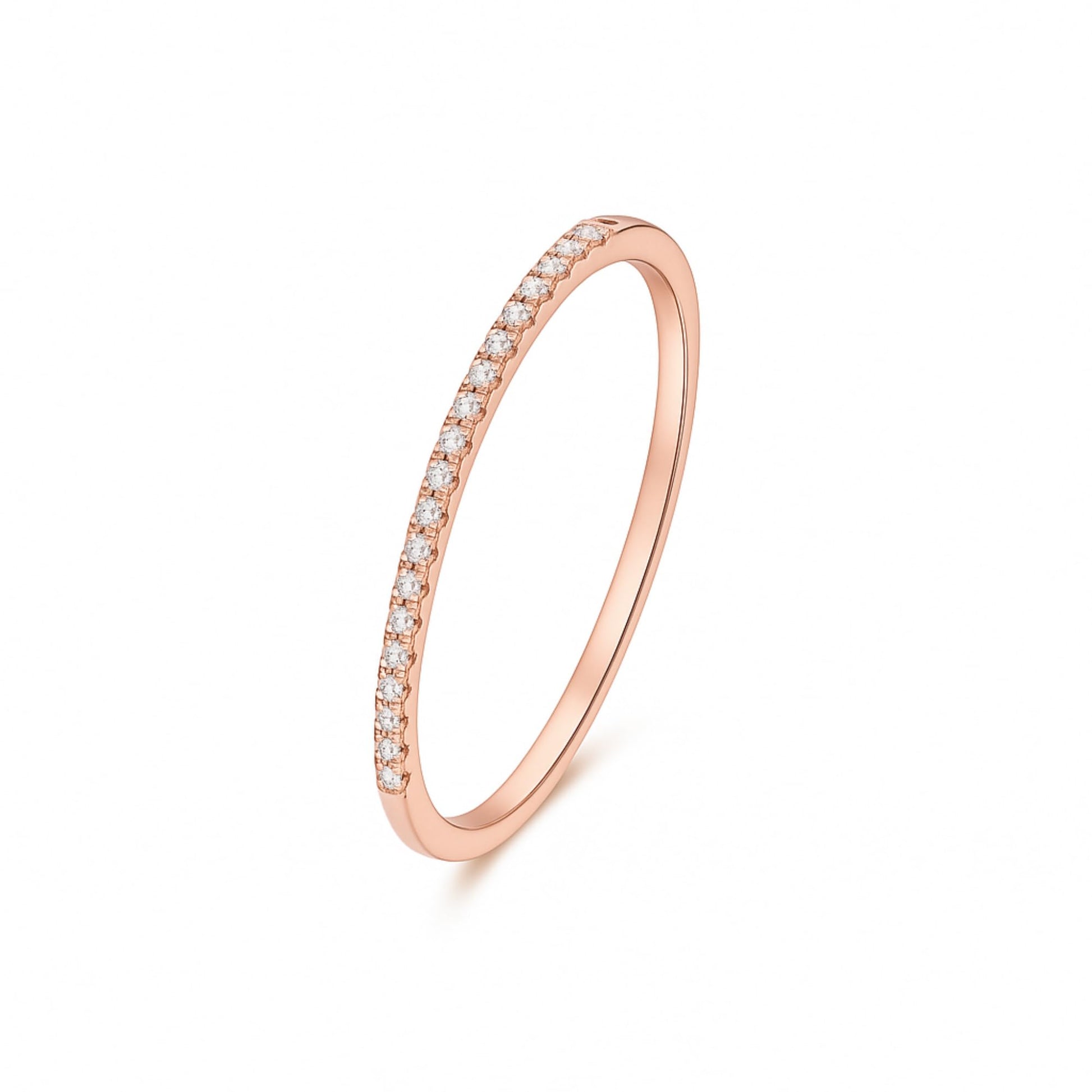 Sterling Silver Half Eternity 1mm Pave Set CZ Stack Ring Wedding Ring Engagement Ring Rhodium/ Rose Gold / 18K Gold