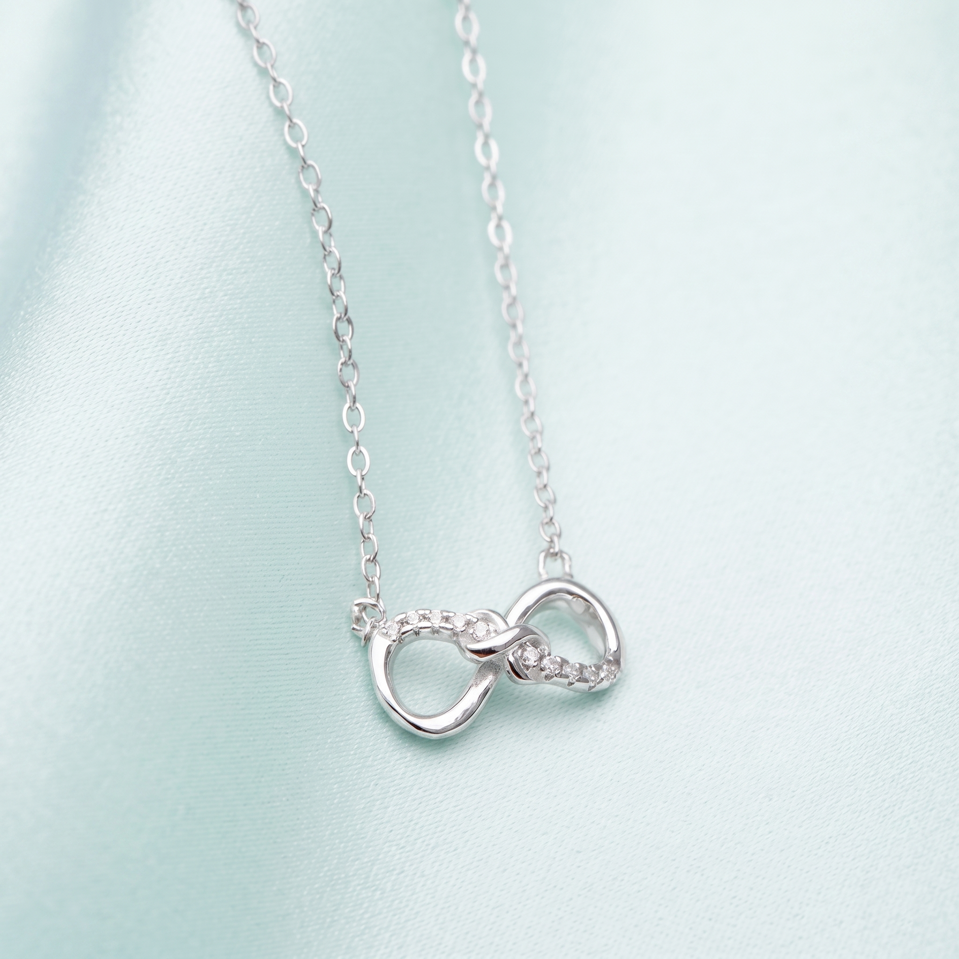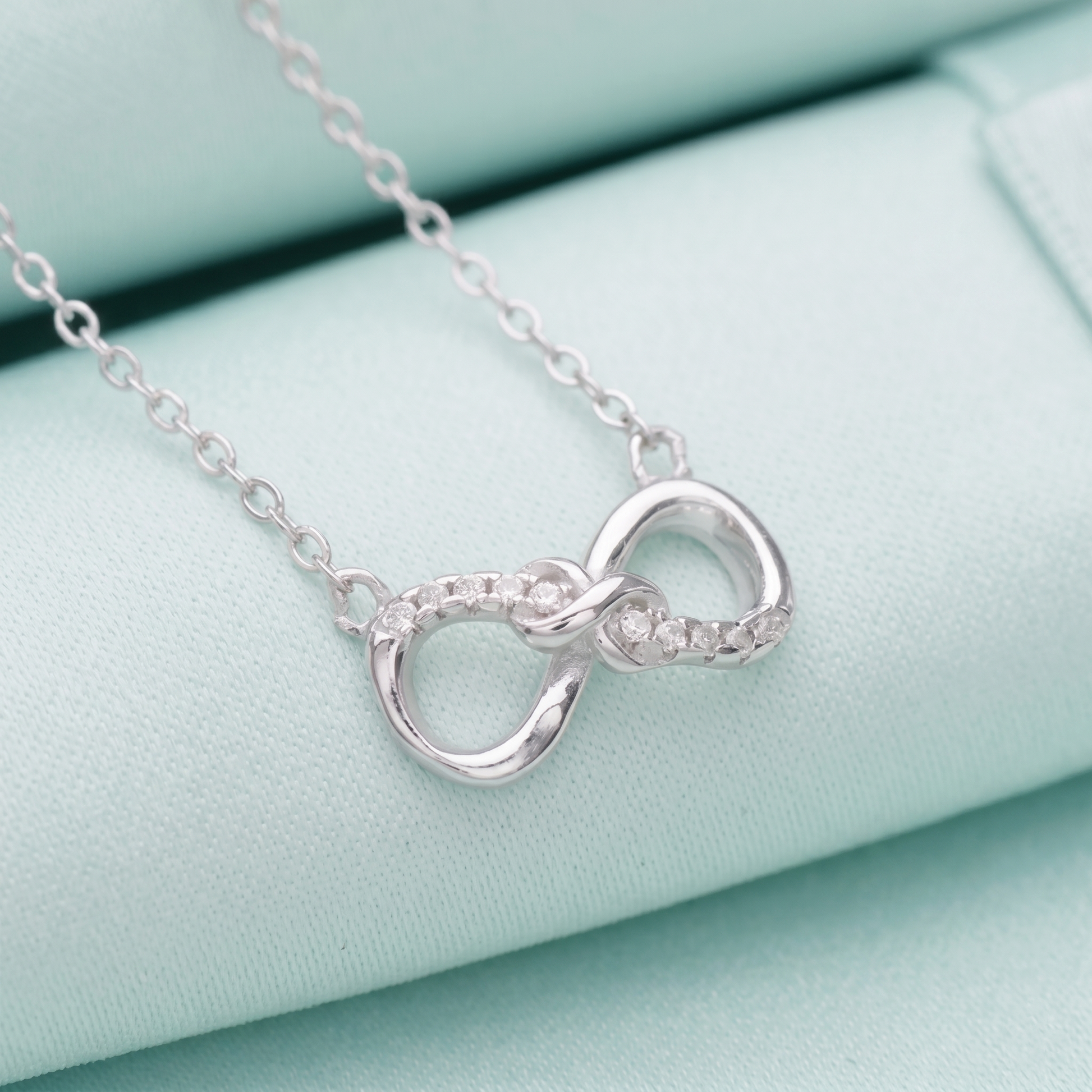 Sterling Silver Infinity Necklace With Paved Clear CZ Endless Love Jewellery 45cm 17.7''