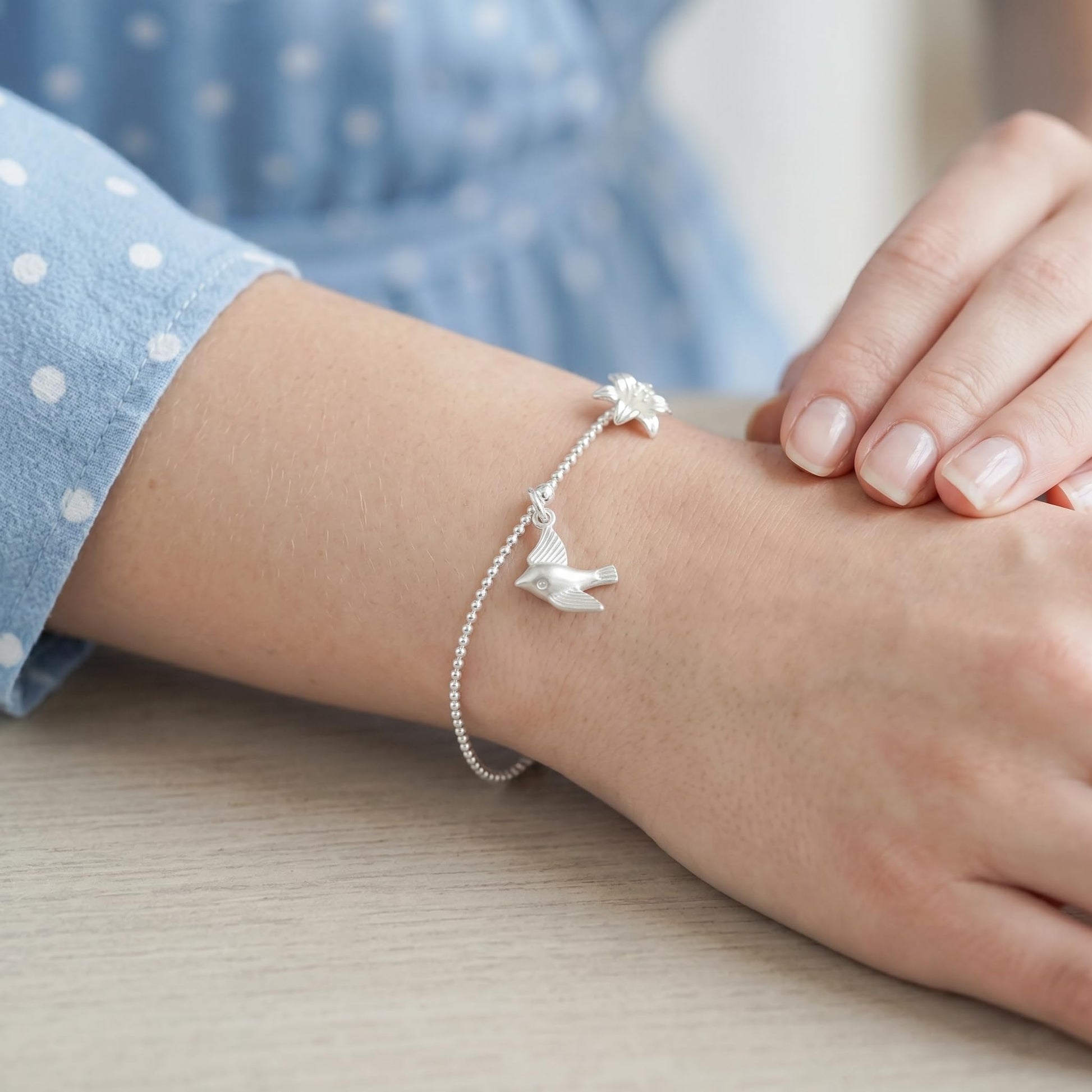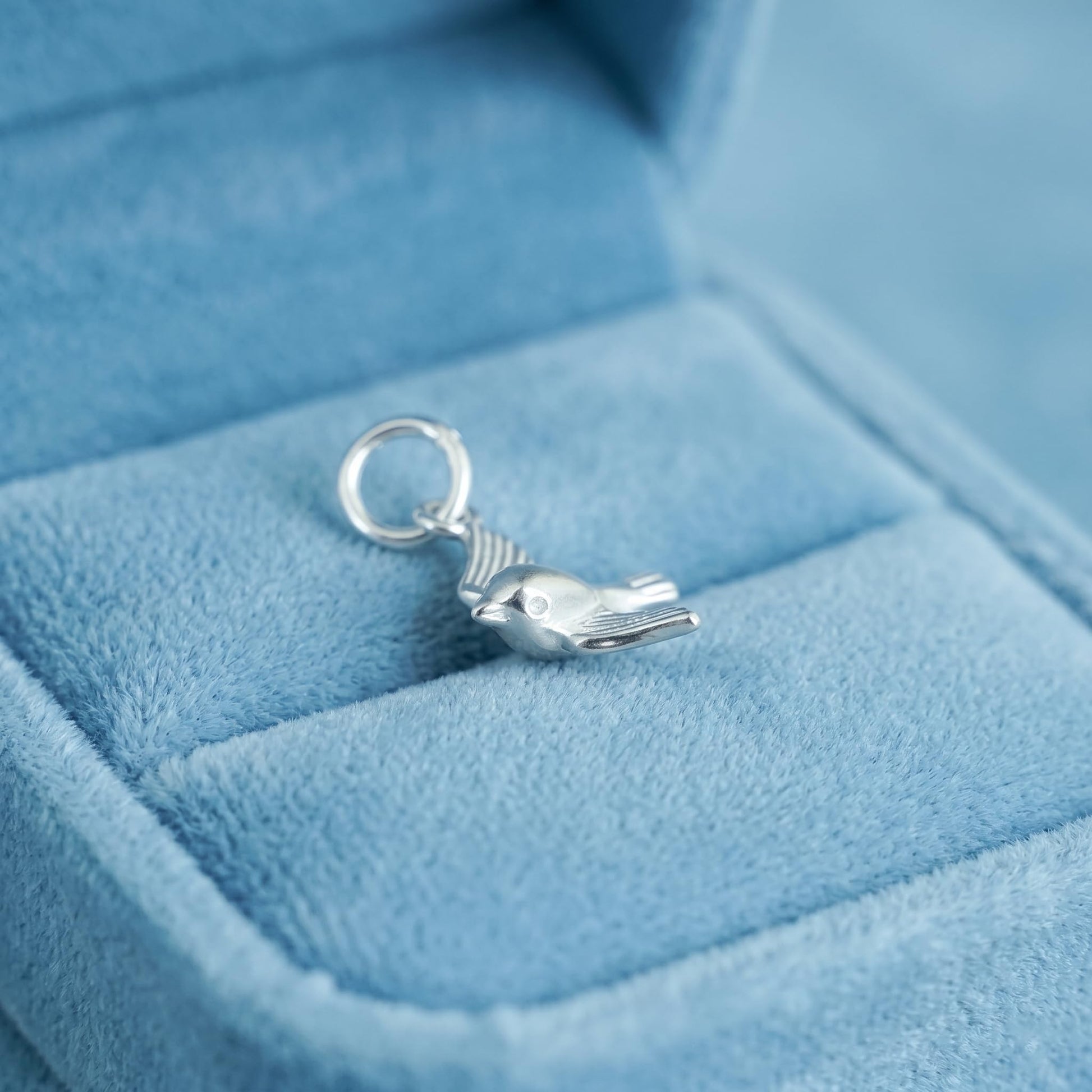Sterling silver cute 3D flying bird charm pendant, ideal for necklaces and bracelets. Lightweight, simple, and easy to wear, with matching chains available.