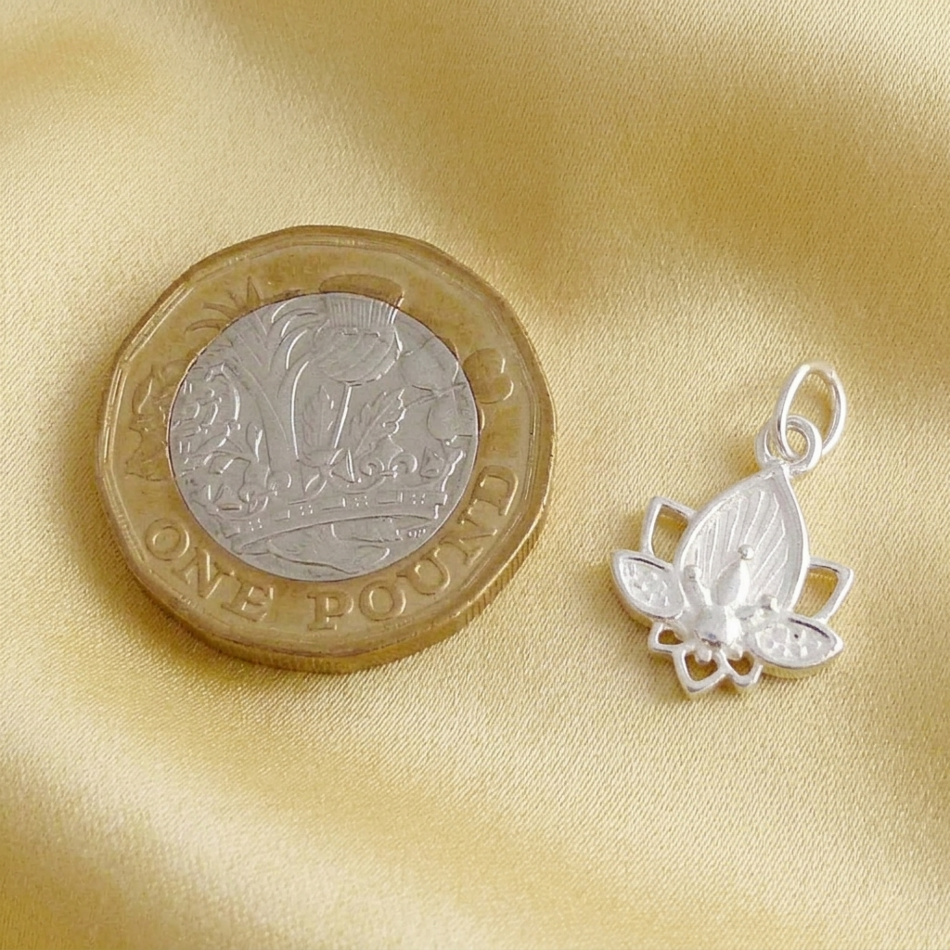 Sterling silver lotus flower yoga/zen namaste charm pendant with oxidised detailing. Suitable for necklaces or bracelets. Stamped for silver authenticity.