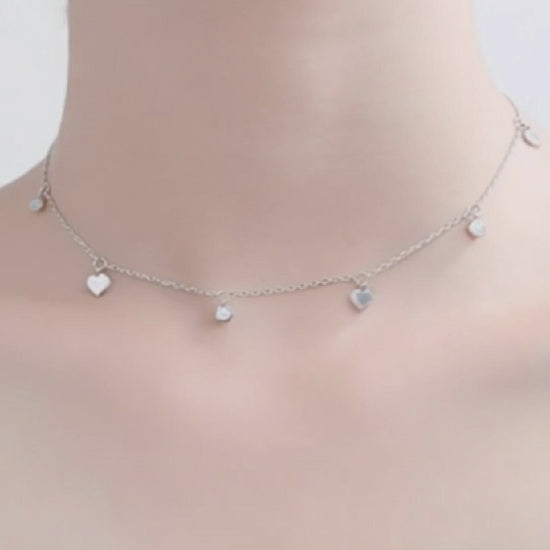 Minimalist Sterling Silver Love Heart CZ Drip Choker Necklace with Rhodium Finish