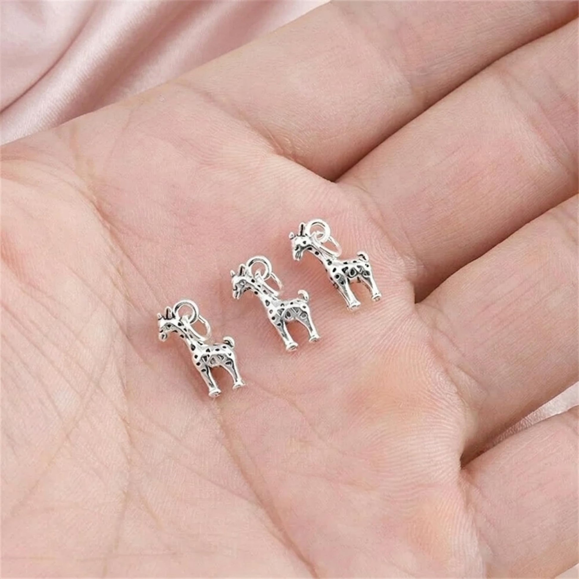 Sterling silver mini oxidised 3D baby giraffe charm pendant, perfect for necklaces, bracelets, and earrings. Lightweight, detailed, and easy to wear, ideal for everyday jewellery or DIY projects.