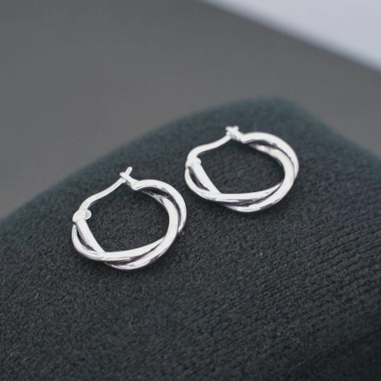These elegant twist hoop earrings are made from sterling silver and feature a delicate knot detail in the center. The hoops are 19mm in diameter and have a sleeper back for comfortable wear. They are perfect for everyday wear or for special occasions.