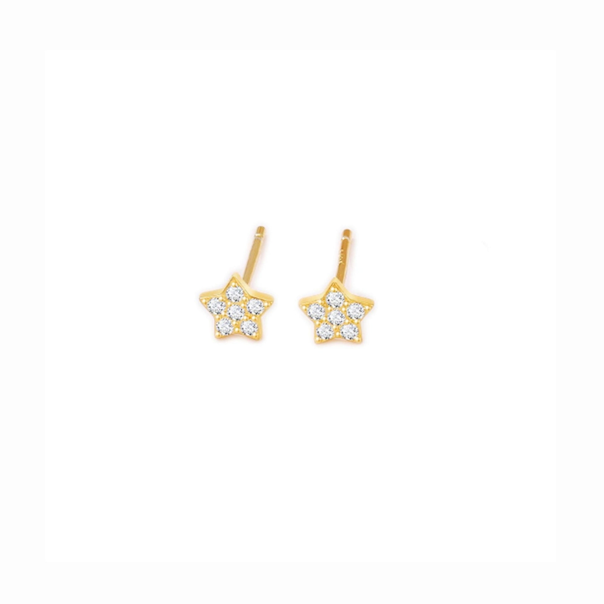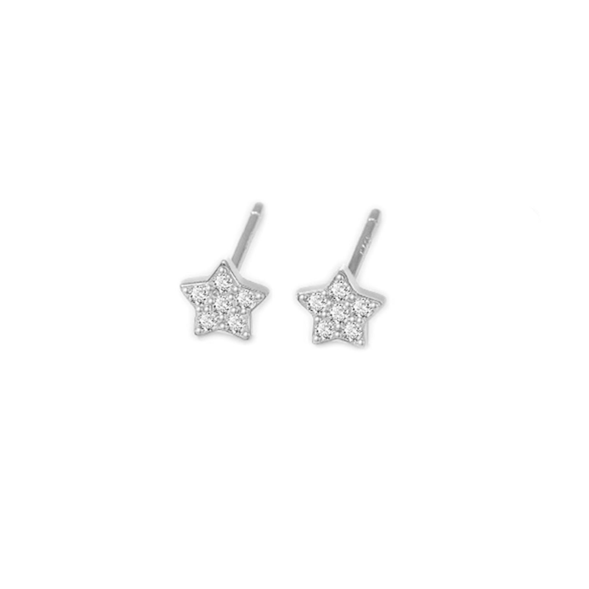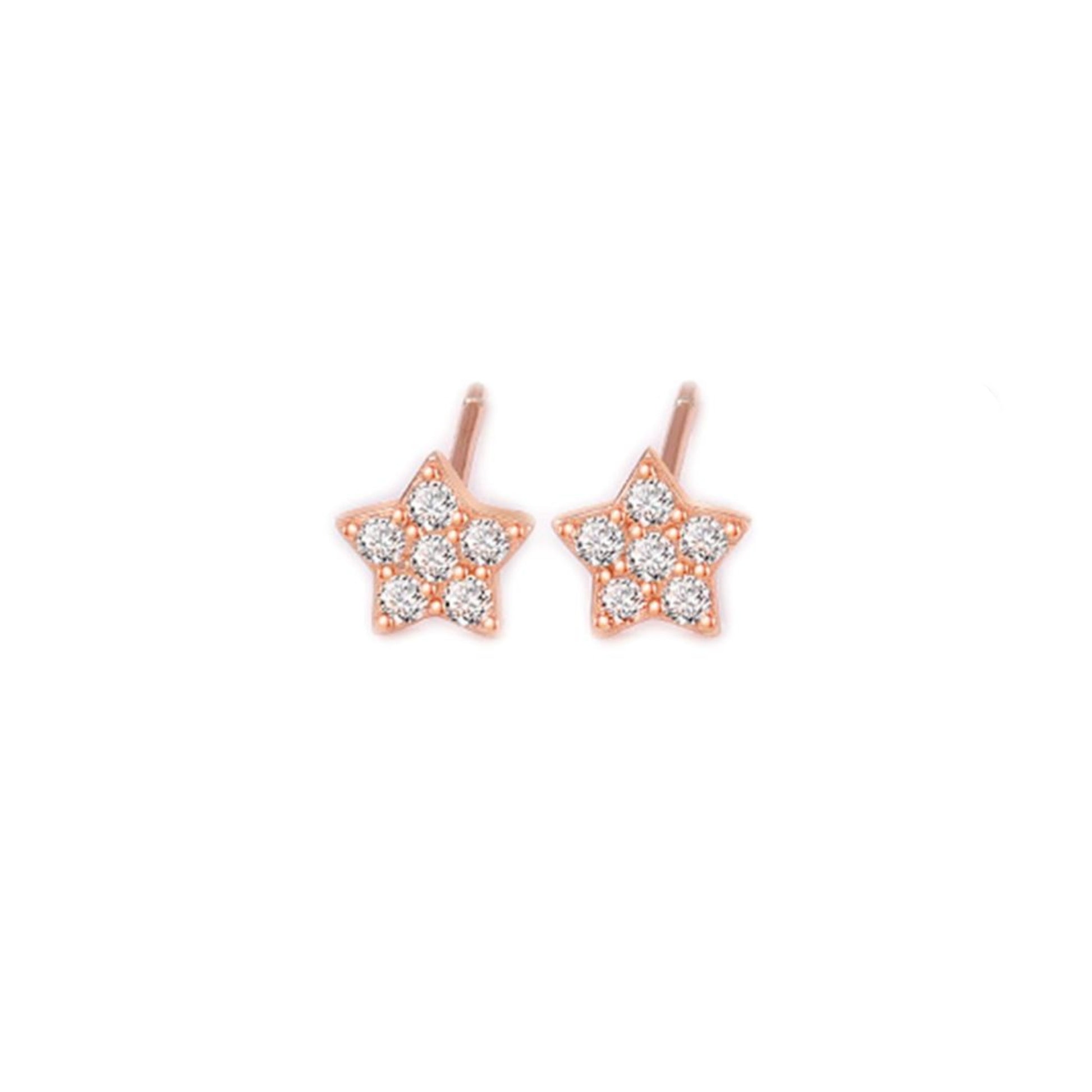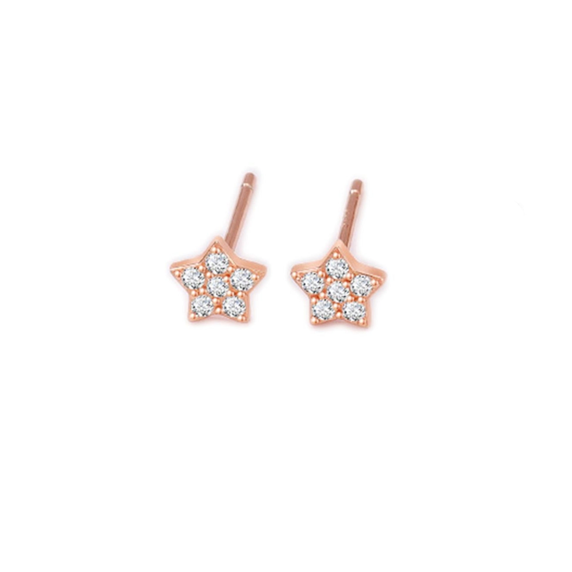 Sterling Silver Paved CZ Star Stud Earrings Rhodium Gold Rose Gold Tones 4 - 7mm