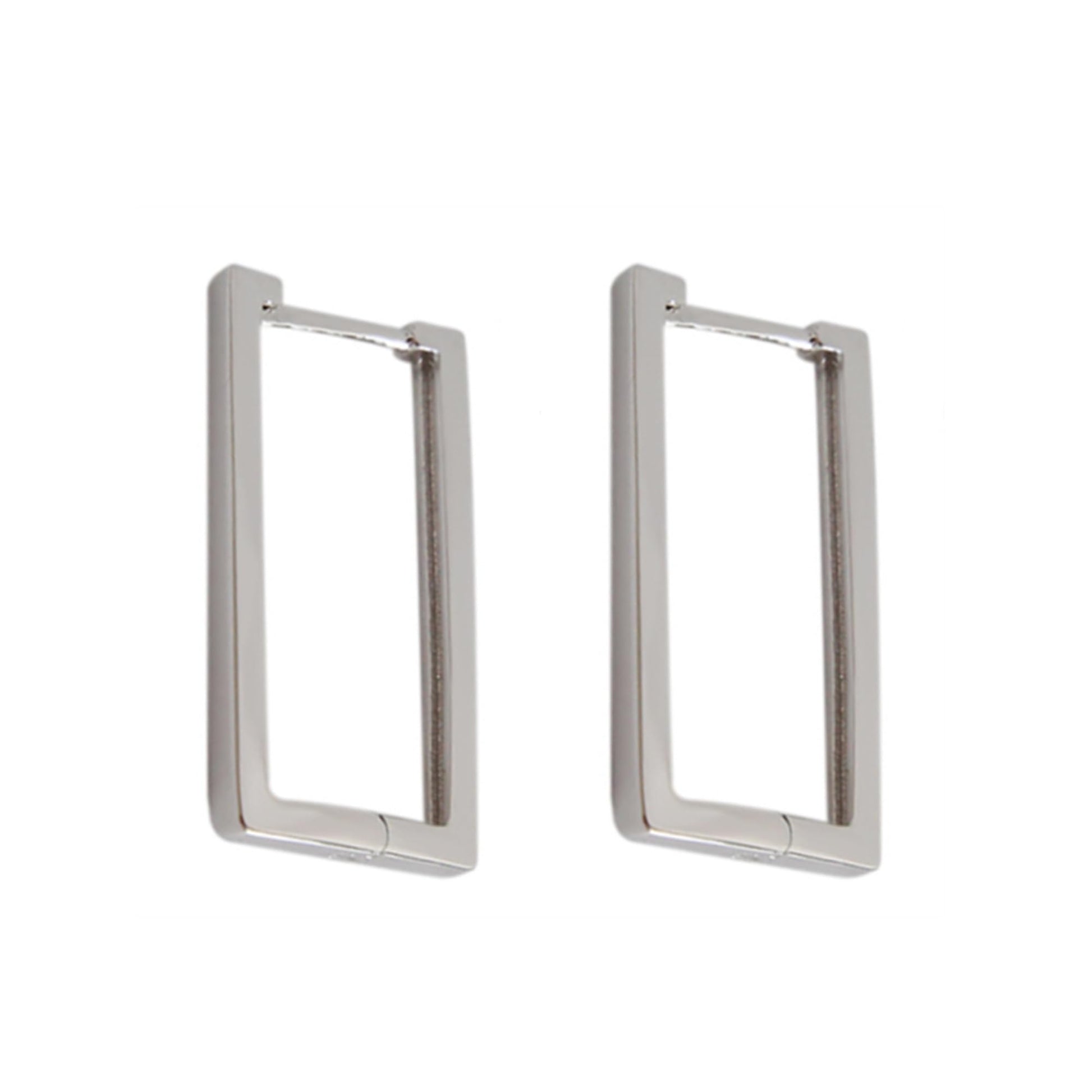 Sterling Silver Rectangle Square Huggie Hoop Drop Earrings 3 Tones Unisex - Gift Boxed ITEM SPECIFICS: Earrings Size: 23mm x 11mm x 1.5mm (L x W x Thickness) Total Weight: 2.3g each pair Metal: Solid 925 sterling silver stamped Surface: Rhodium, 18K Gold and Rose Gold