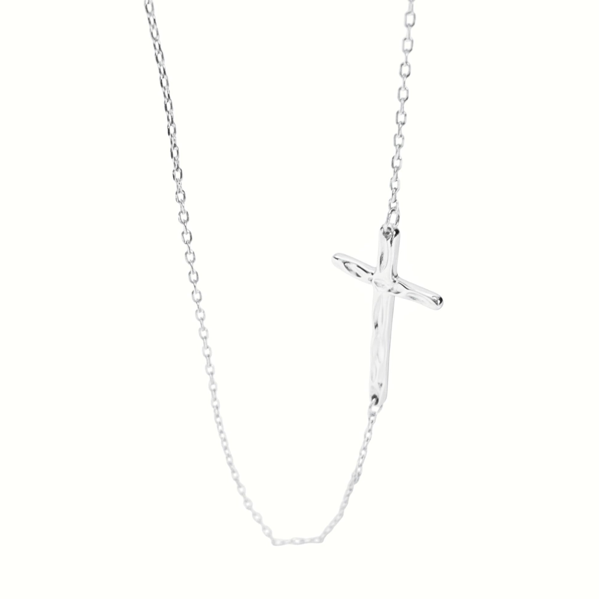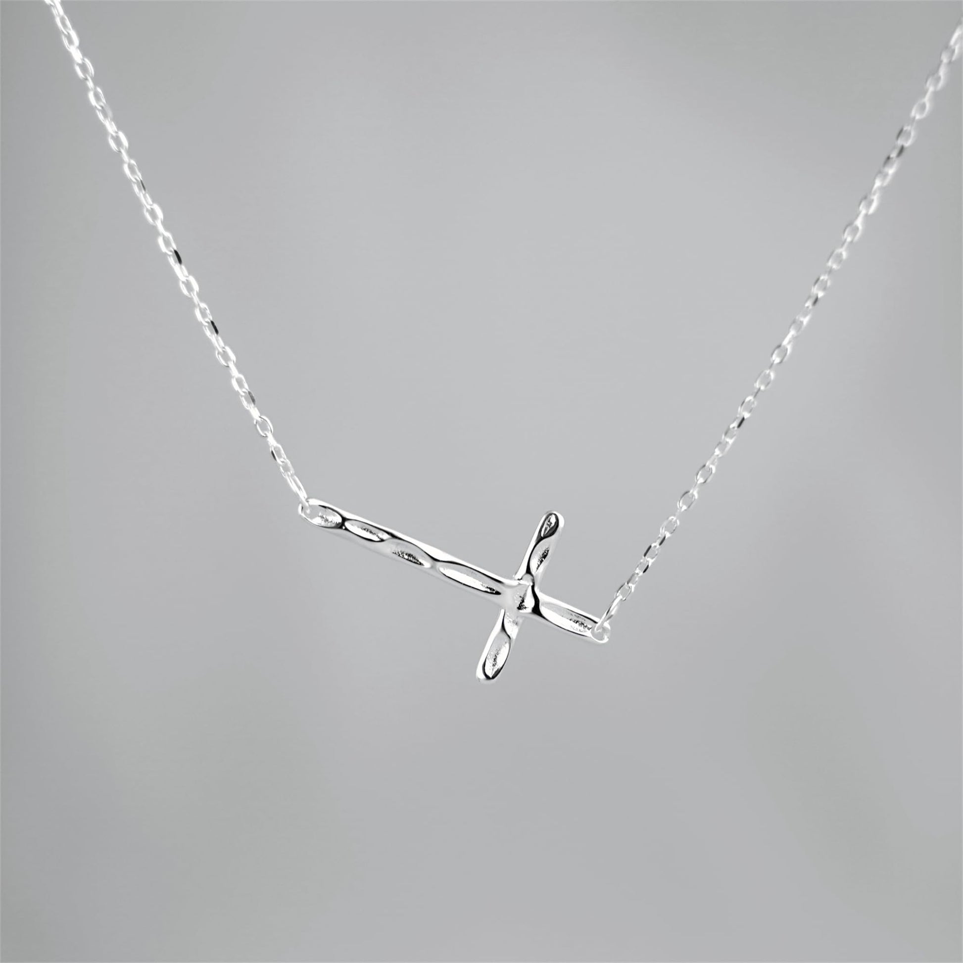 Sterling Silver Reversible Organic Texture Sideways Cross Necklace 42.5cm 16.7"