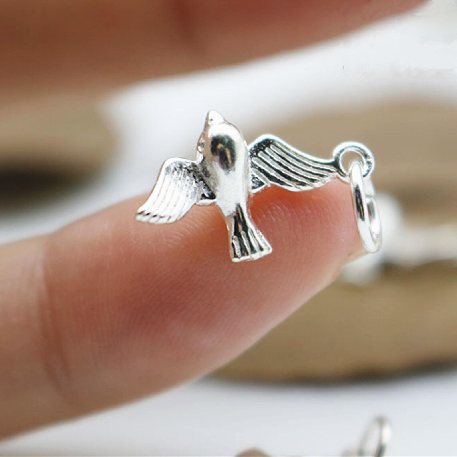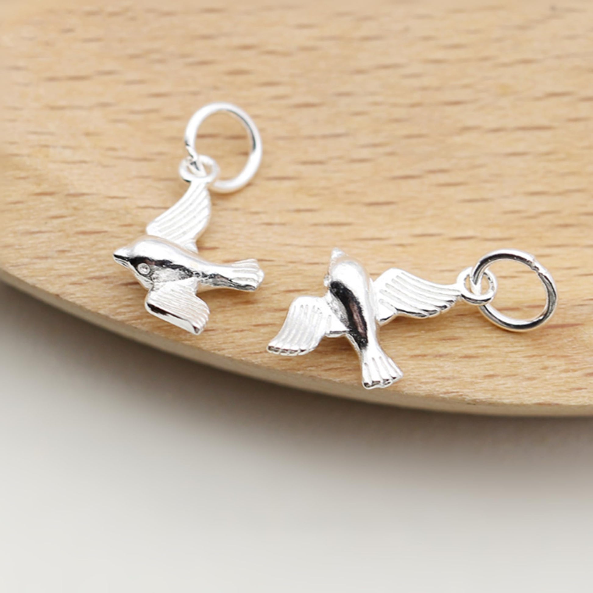 Sterling Silver Cute Little 3D Shiny Flying Bird Pendant Charm for Necklace Bracelet