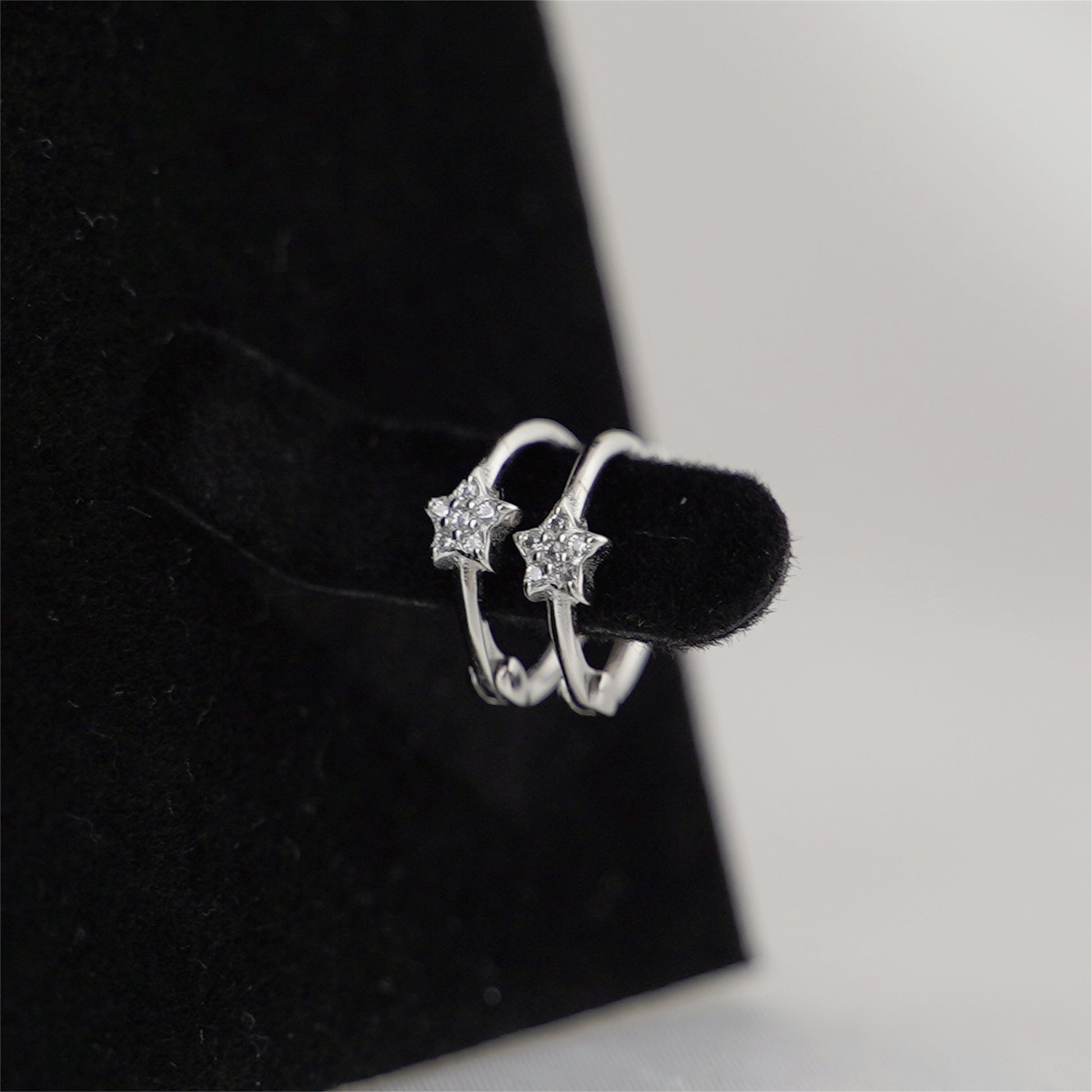 Sterling Silver Star CZ Hinged 9mm Hoop Huggie Earrings- Boxed