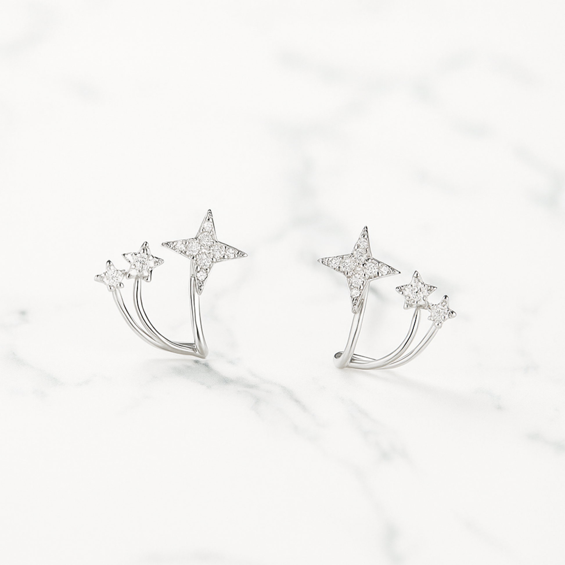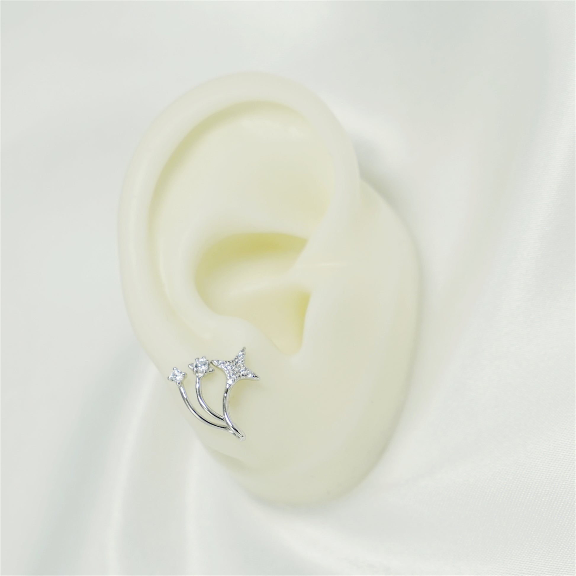 Sterling Silver Triple Shooting Star Polaris CZ Curvy Huggie Stud Earrings